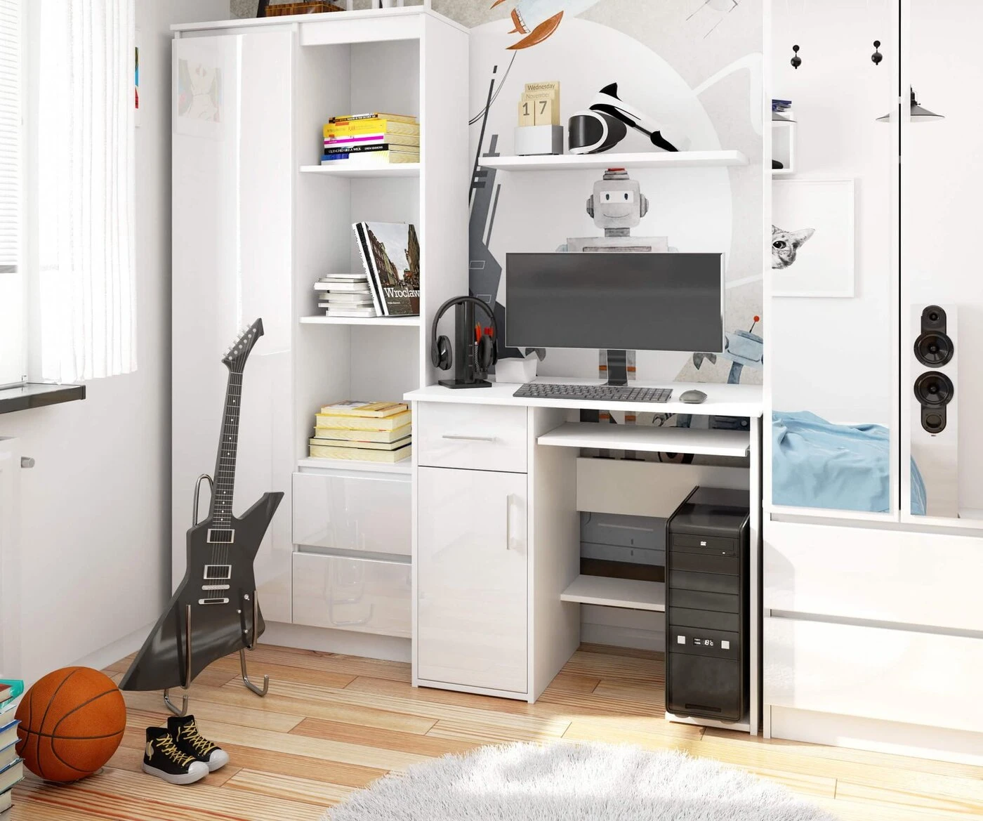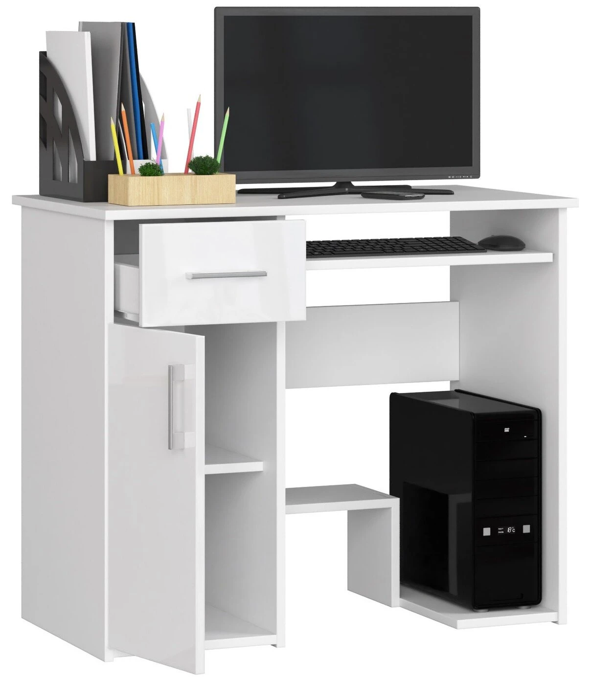 Aprašymas buvo automatiškai išverstas, gali pasitaikyti klaidų., baltas kompiuterio stalas buvo sukurtas žmonėms, kuriems namuose reikia vietos dirbti prie kompiuterio, tačiau jie turi mažai vietos. Šis mažas rašomasis stalas gali sutalpinti visus reikalingus biuro reikmenis, suteikiant vietą darbui, mokymuisi ir pramogoms. Baldai gali būti naudojami vaikų ar jaunimo kambaryje, taip pat biure. Jis nusipelno dėmesio dėl savo universalios išvaizdos ir puikios kokybės. Jo tvirtumo ir ilgaamžiškumo garantija – tvirta 16 milimetrų storio laminuotos plokštės konstrukcija. Gražus, kruopščiai išbaigtas madingos baltos spalvos rašomasis stalas itin vertinamas mūsų internetinėje parduotuvėje besilankančių klientų. Jeigu ieškote patogų darbą prie kompiuterio garantuojančio, apgalvotai pagaminto ir papildomai patrauklaus kainos atžvilgiu, mūsų pasiūlymas tikrai patiks ir teigiamai nustebins funkcionalumo ir aukštumo deriniu. kokybė. - Rašomasis stalas iš dilimui atsparios laminuotos plokštės - Turi daug vietos bet kokiam išdėstymui - Durelių viduje yra viena lentyna - Stalčių fasadai ir durelės pagaminti iš MDF 19 mm akrilo, itin blizgaus - Stalčiai ir klaviatūros lentyna yra ant metalinių ritinėlių kreiptuvų - Matomi kraštai padengti ABS briauna su padidintu atsparumu pažeidimams - Stalčių ir durų rankenos sidabrinės spalvos - Rašomasis stalas, skirtas savarankiškam surinkimui - Pridedamas vadovas - Gamintojo garantija 24 mėn.