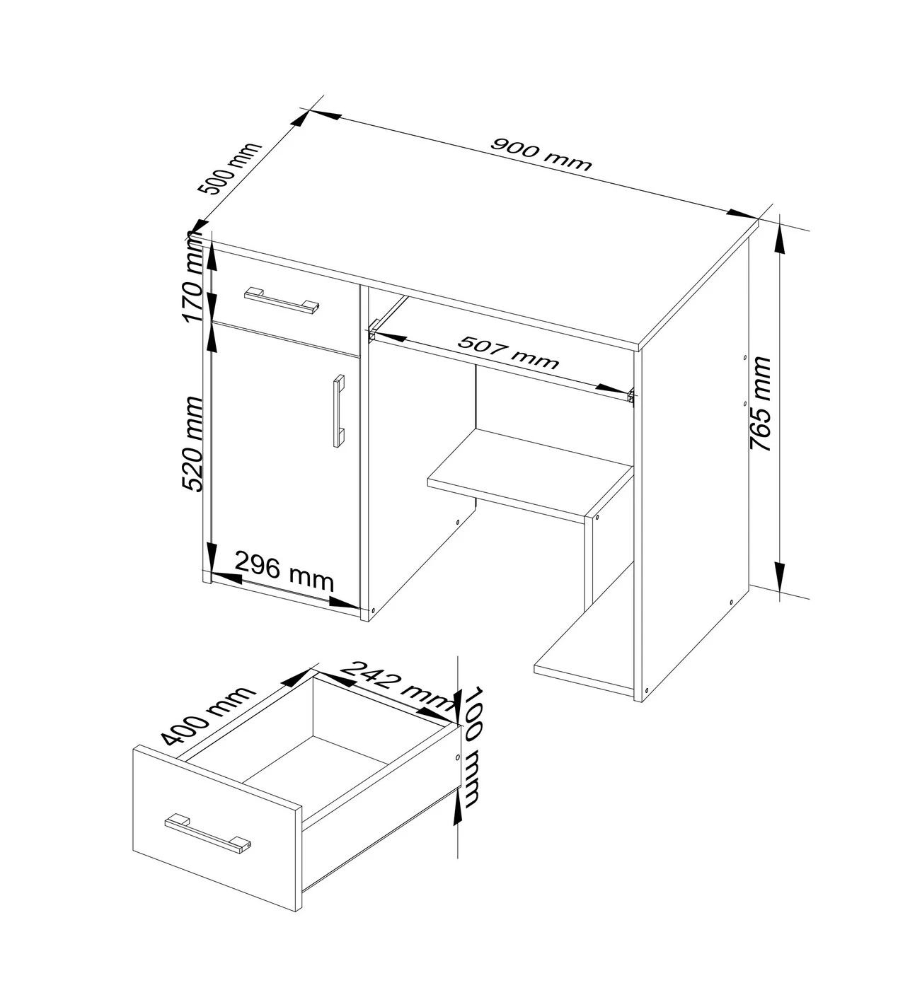 Aprašymas buvo automatiškai išverstas, gali pasitaikyti klaidų. Ar geros kokybės kompiuterių stalai turi būti brangūs? Nebūtinai! To pavyzdys yra 90 cm JAY rašomasis stalas,, baltas su grafito pilkais priekiais. Tai funkcionalus baldas, kuris palengvins darbo ir mokymosi organizavimą prieš kompiuterio ekraną. Puikiai tiks svetainėje, jaunimo kambaryje ar biure, kur sužavės savo aukšta estetika. Kodėl verta atkreipti dėmesį į JAY stalą? Čia yra didžiausi jo pranašumai: ilgaamžiškumas – stalas pagamintas iš laminuotos plokštės, atsparios dilimui ir įbrėžimams, talpa - balduose yra daug vietos bet kokiam išdėstymui, t.y. stalčius ir dvi lentynos (vienos durys), stalas taip pat turi lentyną klaviatūrai ir centrinį bloką, naudojimo patogumas - stalčiai ir lentyna klaviatūrai juda ant metalinių ritinėlių kreiptuvų, atsparumas - matomos briaunos padengtos ABS briauna padidintu atsparumu pažeidimams, estetiška išvaizda - baldas turi šiuolaikiška išvaizda, akį traukia baltos ir, tamsiai rudas spalvos derinys, taip pat gražiai atrodo stalčių rankenos ir sidabrinės durelės, funkcionalumas – rašomasis stalas suteikia patogumo dirbti priešais kompiuterio ekraną, patraukli kaina, garantija – 24 mėn. JAY rašomasis stalas yra tvirtas ir estetiškas baldas, kuris tarnaus Jums ilgus metus. Tuo pačiu metu jį galima įsigyti už prieinamą kainą. Tai labai geras pasirinkimas daugeliu atžvilgių! Baldai skirti montuoti savarankiškai. Tačiau tai neturėtų kelti problemų – užsakyme yra instrukcijos, kurios padės surinkti stalą.