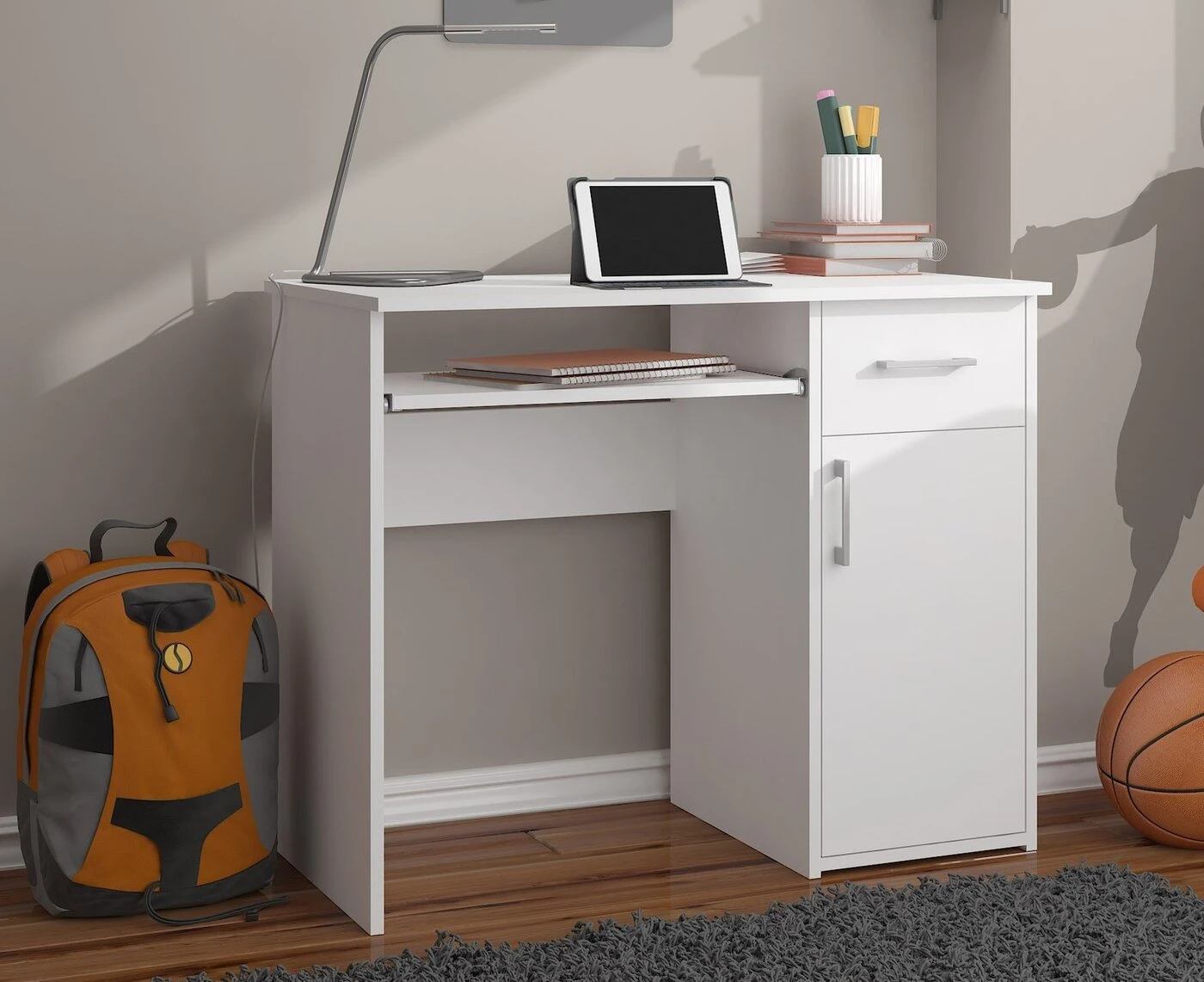 Aprašymas buvo automatiškai išverstas, gali pasitaikyti klaidų. Gražus, baltas laisvai pastatomas stalas yra pasiūlymas žmonėms, kurie laikosi principo, kad mažiau yra daugiau. Mūsų paruoštam produktui būdingas paprastumas ir elegancija teigiamai stebina kartu su aukšta kokybe ir neįtikėtinu funkcionalumu. Baldą sudaro stalviršis, stumdoma klaviatūros lentyna, spintelė ir stalčius. Viskas buvo išlaikyta baltomis spalvomis. Baldai yra lengvai valomi, patvarūs, ilgaamžiai ir atsparūs pažeidimams, nes naudojamos geros kokybės medžiagos. Pasiūlymas tikrai patenkins žmones, ieškančius mažų stalų, puikiai tinkančių mažoms erdvėms. Rašomasis stalas gali būti naudojamas biure, namų darbo kambaryje, jaunimo kambaryje, taip pat daugelyje kitų kambarių. Jam būdinga konkurencinga kaina, kuri taip pat yra neabejotinas šio pasiūlymo pranašumas. Raginame visus žmones, kurie orientuojasi į universalius, nesenstančius įrangos elementus, pasinaudoti pasiūlymu. Kviečiame įsigyti. - Rašomasis stalas iš trinčiai atsparios laminuotos plokštės - Yra daug vietos bet kokiam išdėstymui - Durelių viduje yra viena lentyna - Stalčių ir durų fasadai pagaminti iš laminuotos plokštės - Stalčiai ir klaviatūros lentyna juda ant metalinio volelio kreiptuvai - Matomi kraštai padengti ABS briauna, kad būtų didesnis atsparumas pažeidimams - Sidabrinės rankenos stalčiams ir durims - Savarankiškai surenkamas stalas - Laisvai pastatomas stalas (laminuota lenta stalo nugarėlė) – Instrukcija pridedama – 24 mėnesių garantija biuras , viešbučio ar paslaugų patalpose pritemdyta. ABS briauna apsaugo stalo kraštus nuo pažeidimų. Nuostabus kainos ir kokybės santykis.