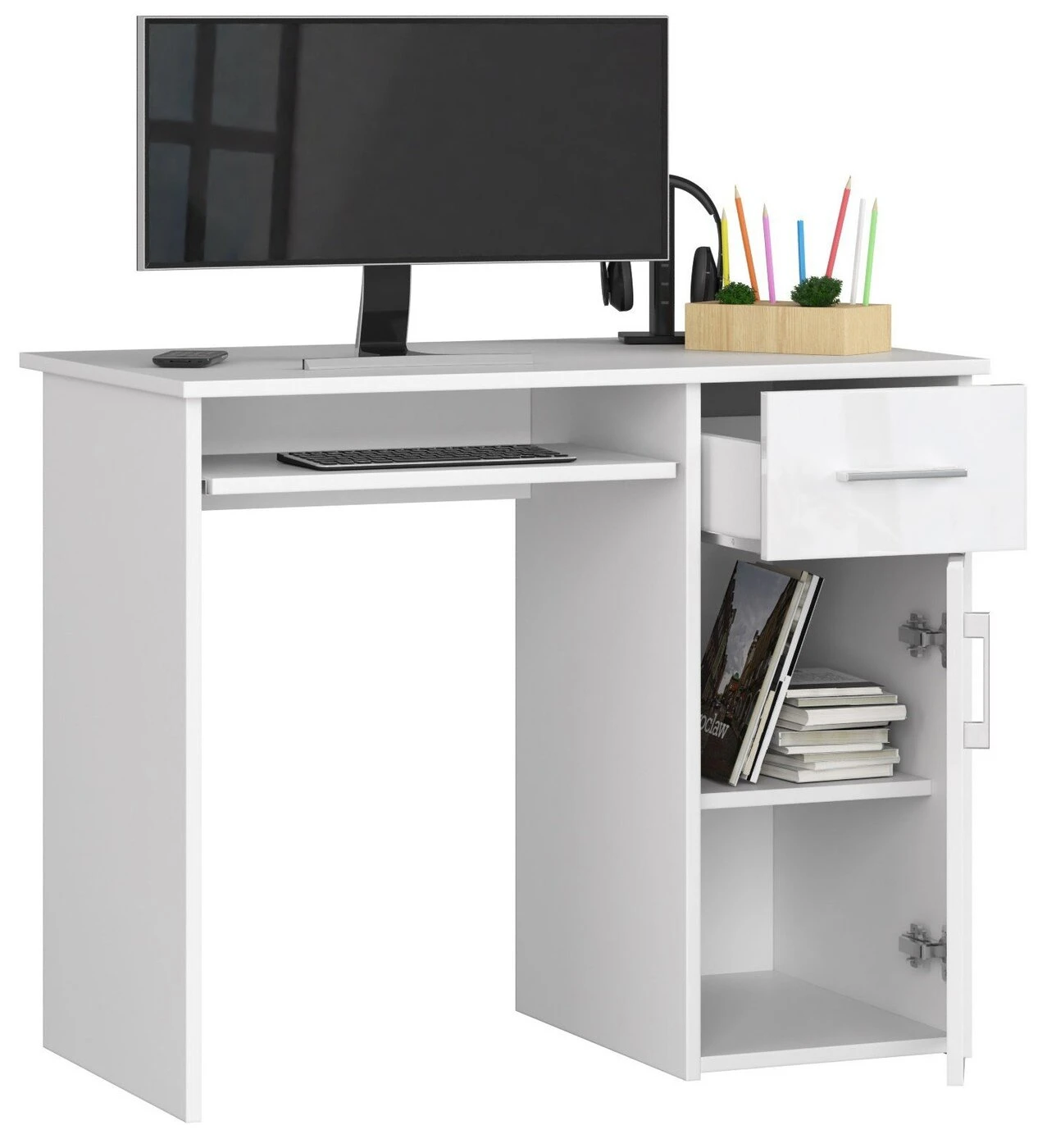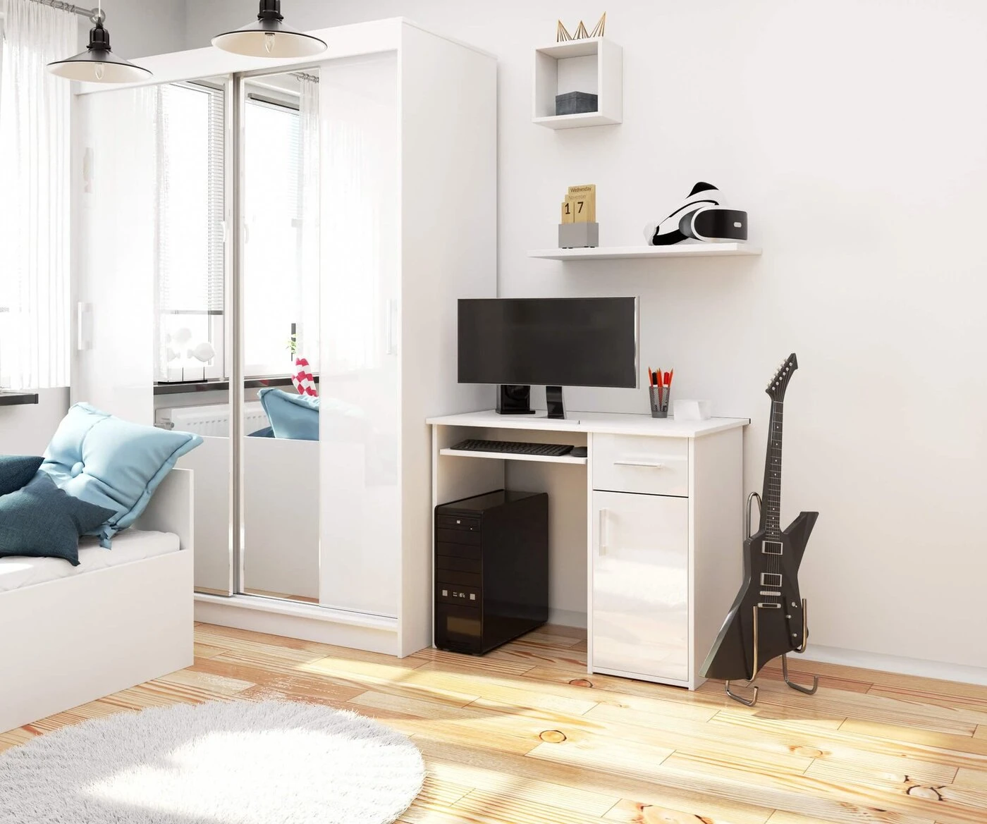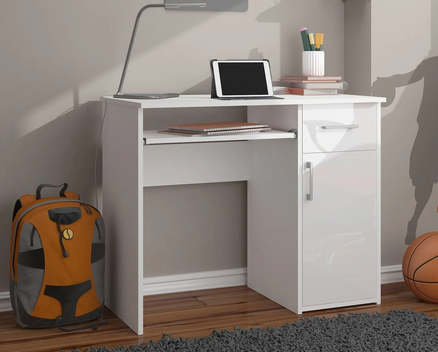 Aprašymas buvo automatiškai išverstas, gali pasitaikyti klaidų. Ar, baltas rašomasis stalas yra praktiškas sprendimas jaunimo kambaryje? Natūralu. Lengvai valomas, suteikiantis žavesio visam kambariui, puikiai tiks ir vaiko kambaryje, ir namų biure. Mūsų pristatomi baldai pasižymi ne tik vizualinėmis vertybėmis, bet ir aukšta kokybe, kurią sudaro kokybiškos, patvarios ir patvarios gamybos metu naudojamos medžiagos. Rašomasis stalas pasižymi mažais matmenimis, todėl puikiai tiks net mažame kambaryje. Laisvai pastatomas PIN stalas susideda iš lentynos klaviatūrai, stalčiaus ir rakinamos spintelės. Suteikia komfortą ir darbo laisvę tiek namuose, tiek biure. Baldai pagaminti iš laminuotos plokštės, kurios storis 16 milimetrų. Jei susidomėjote mūsų pasiūlymu, kviečiame susipažinti su kitais šios kolekcijos baldais. Baltos spalvos furnitūra tikrai praskaidrins interjerą, sukurdama malonią aplinką studijoms ar biuro darbams. - Rašomasis stalas iš dilimui atsparios laminuotos plokštės - Yra daug vietos bet kokiam išdėstymui - Yra viena lentyna durelių viduje - Stalčiai ir durelių fasadai pagaminti iš MDF 19mm ACRYLIC High Gloss - Stalčiai ir klaviatūros lentyna eina ant metalinių ritinėlių kreiptuvų - Matomi kraštai padengti ABS briauna garantuoja didesnį atsparumą pažeidimams - Sidabrinės stalčiaus ir durų rankenos - ""Pasidaryk pats"" rašomasis stalas - Laisvai pastatomas stalas (laminuota lenta stalo gale) - Pristatymo vadovas - Garantija 24 mėn. biuro, viešbučio ar paslaugų patalpos. ABS briauna apsaugo stalo kraštus nuo pažeidimų. Nuostabus kainos ir kokybės santykis.