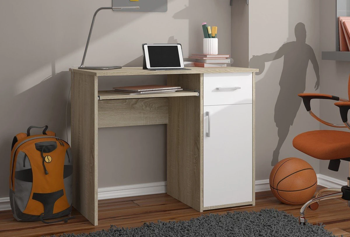 Aprašymas buvo automatiškai išverstas, gali pasitaikyti klaidų. - Rašomasis stalas iš dilimui atsparios laminuotos plokštės - Yra daug vietos bet kokiam išdėstymui - Durų viduje yra viena lentyna - Stalčių ir durų fasadai pagaminti iš laminuotos plokštės - Stalčiai ir klaviatūros lentyna yra ant metalinių ritinėlių kreiptuvų - Matomi kraštai, padengti ABS briauna, kad būtų didesnis atsparumas pažeidimams - Sidabrinės stalčių ir durų rankenos - Rašomasis stalas, skirtas savarankiškai surinkti - Laisvai pastatomas stalas (laminuota lenta stalo gale) - Instrukcijos įtrauktos - Garantija 24 mėn. Laisvai stovintis stalas už jis gali būti patalpintas biure, viešbutyje ar tarnybinėse patalpose. ABS briauna apsaugo stalo kraštus nuo pažeidimų. Puikus kainos ir kokybės santykis.