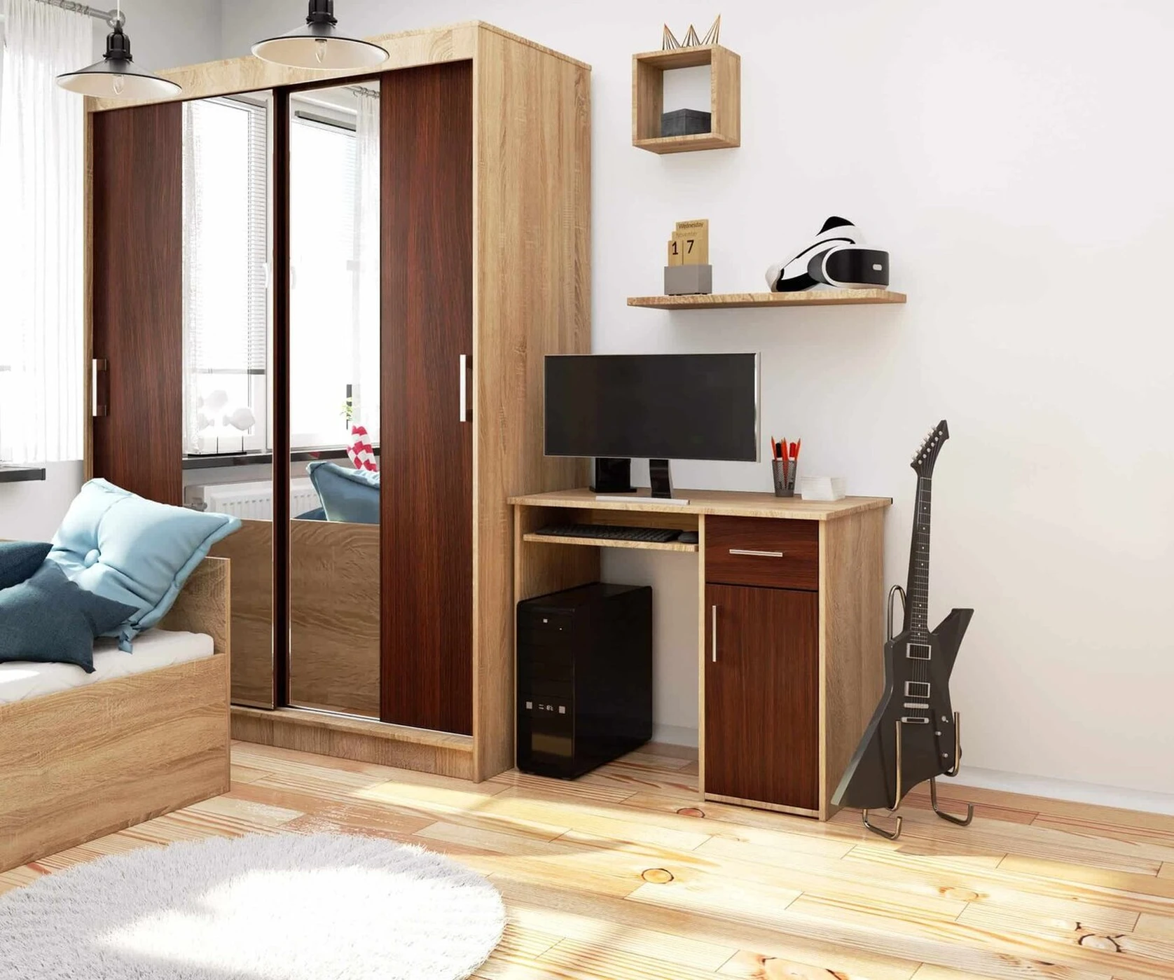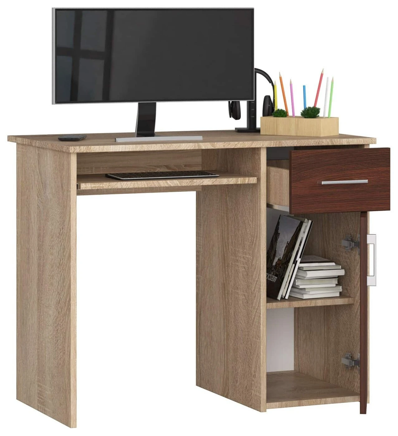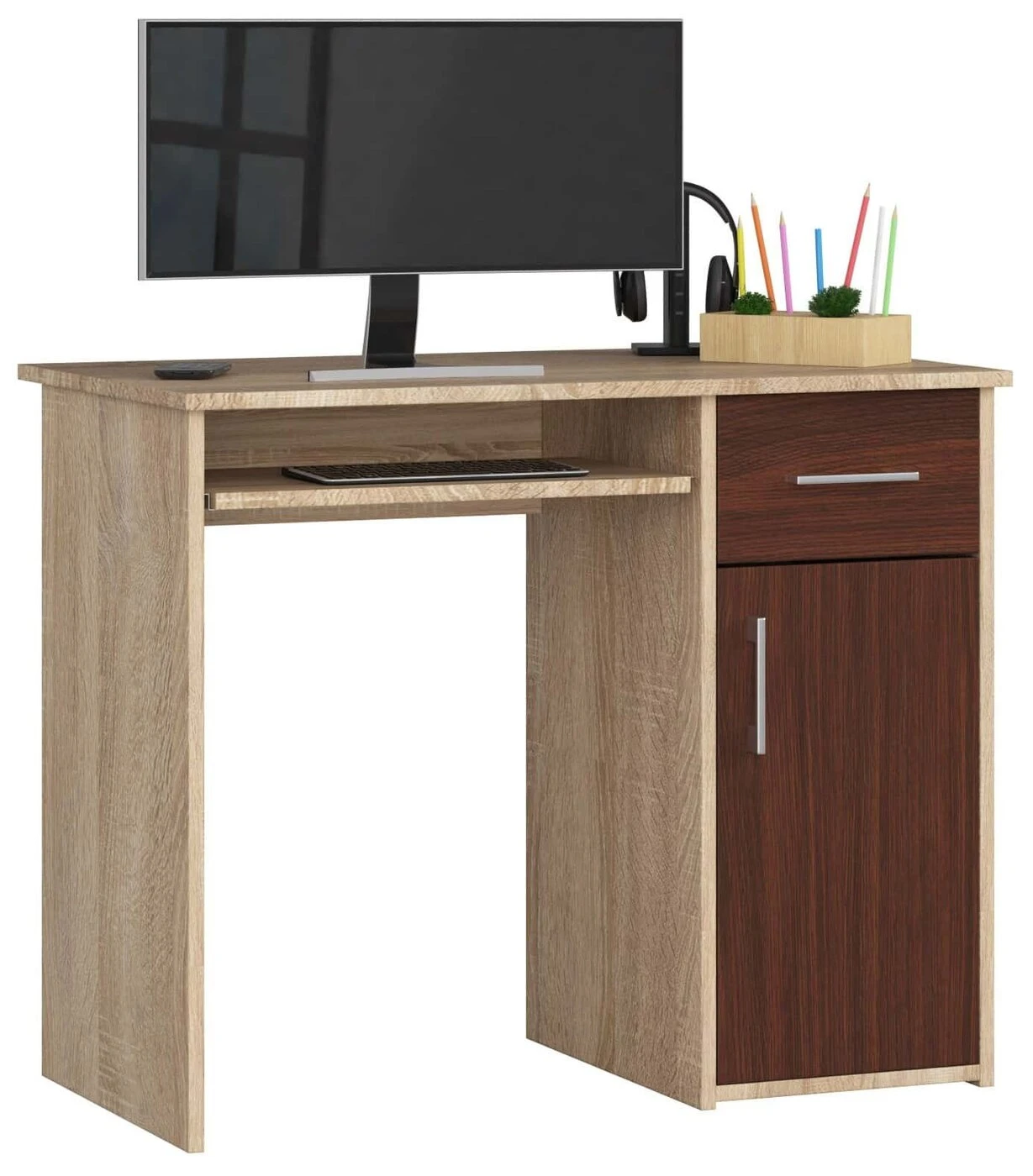 Aprašymas buvo automatiškai išverstas, gali pasitaikyti klaidų.Elegantiškas ir patogus kompiuterio stalas – tai baldas, kurio ieško daugelis. Vienas iš mūsų parduotuvės pasiūlymų –, ąžuolo spalvos ir, tamsiai rudas spalvų rašomasis stalas PIN 90 cm, keliantis asociacijas su medžiu. Laisvai pastatomas baldas tinka svetainei, jaunimo kambariui ir biurui. Tai palengvins darbą ir mokymąsi prie kompiuterio ekrano. Kokie yra PIN 90 cm stalo privalumai? Jų yra labai daug: ilgaamžiškumas - rašomasis stalas pagamintas iš geros kokybės laminuotos plokštės, kuri yra atspari trinčiai ir įbrėžimams, o stalčių fasadai ir durelės pagaminti iš patvarios medžiagos, tokios kaip MDF plokštė, talpa – vartotojas turi stalčių ir dvi lentynas, funkcionalumas – stalčiai ir klaviatūros lentyna juda ant metalinių ritinėlių kreiptuvų , atsparumas - matomi stalo kraštai padengti ABS briauna, kuri garantuoja didesnį atsparumą pažeidimams, elegantiška išvaizda - paprasta Baldo forma, sidabrinės stalčiaus ir durų rankenos bei, ąžuolo spalvos ir, tamsiai rudas spalvų derinys daro stalą itin stilingą, patraukli kaina, garantija – 24 mėn. Retai apibūdinami rašomieji stalai patikimumas ir gera kokybė, o tuo pačiu ir prieinama kaina. Mūsų parduotuvėje tai įmanoma! PIN stalas – tai baldas, kuris nustebins savo funkcionalumu ir ilgaamžiškumu. Jis tikrai tarnaus daugelį metų ir puikiai atrodys svetainėje ar kitoje patalpoje. Rašomasis stalas skirtas surinkti savarankiškai, nes instrukcija yra pridėta prie užsakymo.