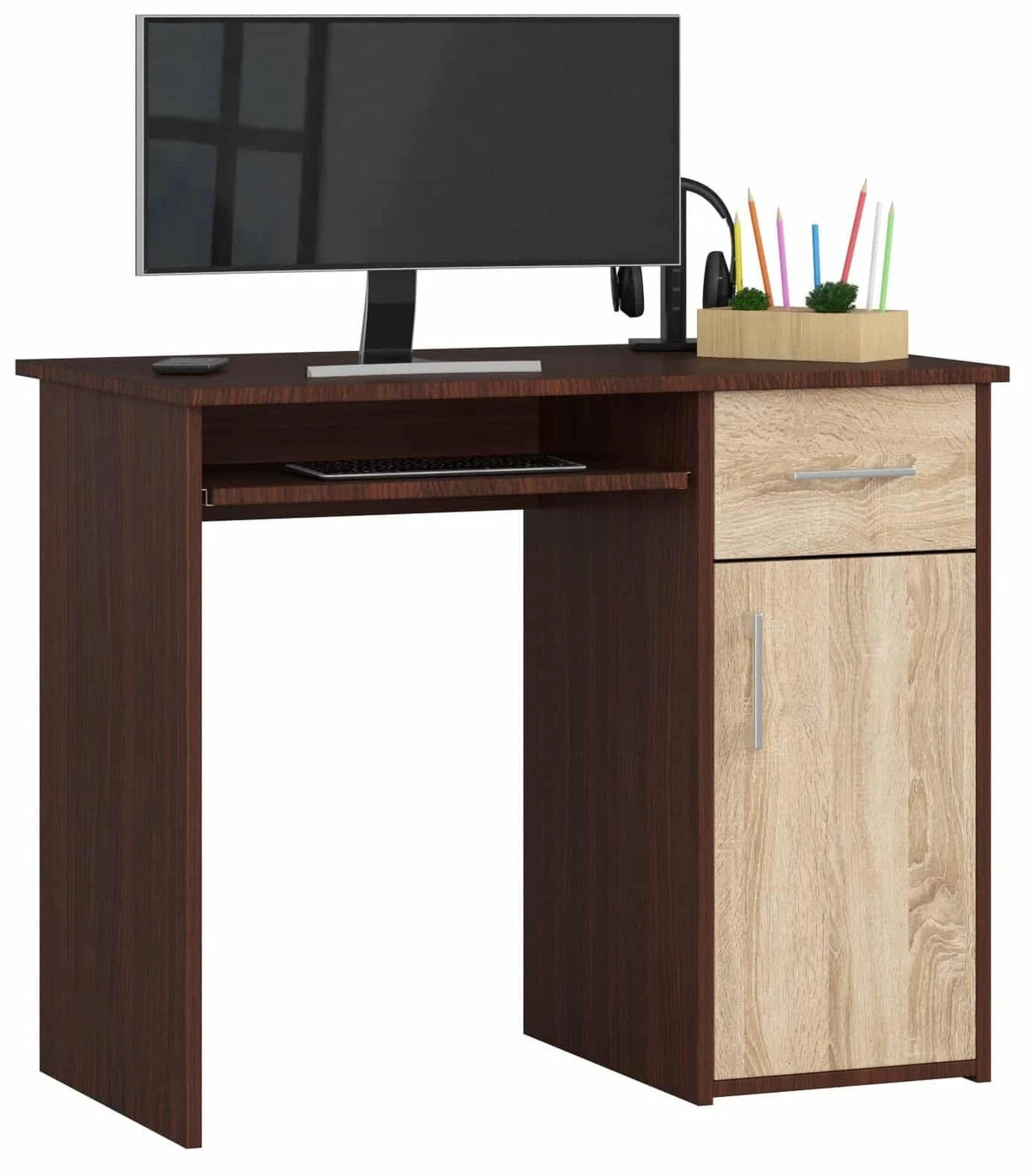 Aprašymas buvo automatiškai išverstas, gali pasitaikyti klaidų. Klasikinis, elegantiškas, laisvai pastatomas PIN stalas puikiai tinka kaip mokyklinis stalas vaikų ar jaunimo kambaryje. Tai taip pat bus geras sprendimas mažiems biurams, kur turime pastatyti kelias darbo vietas vieną šalia kitos. 90 cm pločio stalviršis leidžia laisvai ant jo pastatyti monitorių, o klaviatūrą patogiai galima pastatyti ant žemiau esančios slankiojančios lentynos. Visus reikalingus dokumentus ir knygas galime sutalpinti į didelę spintelę su lentyna ir stalčiumi. Rašomojo stalo konstrukcija pagaminta iš MDF plokštės su trinčiai atsparia akrilo danga. Klasikinis dizainas ir spalvos:, tamsiai rudas ir, ąžuolo spalvos. Puikiai atrodo tiek biure, tiek darbo kambaryje ar jaunimo kambaryje. Erdvė dokumentams, knygoms ir pan. saugoti. Pagaminta iš trinčiai atsparus MDF. Stalo nugarėlė pagaminta iš tos pačios plokštės kaip ir šonai – gali stovėti bet kokia konfigūracija. Kraštai tvirtinami ABS lukštu, ačiū kurios yra atsparios mechaniniams pažeidimams ir užtvindymui. Ištraukiama lentyna klaviatūra ir stalčius juda ant metalinių slankiklių ir ratukų. 24 mėnesių garantija. Surinkimo instrukcijos pakuotėje. Lenkiškas gaminys, Laisvai pastatomi PIN kodo stalai skirti montuoti savarankiškai. Pakuotėje kartu su visais rašomojo stalo elementais gauname surinkimo instrukcijas ir reikiamus įrankius, su kuriais galime susukti baldus. Nepamirškite tinkamai prižiūrėti rašomojo stalo, nes taip prailginsite jo ilgį. gyvenimą – todėl verta jį valyti baldų priežiūrai skirtomis priemonėmis.