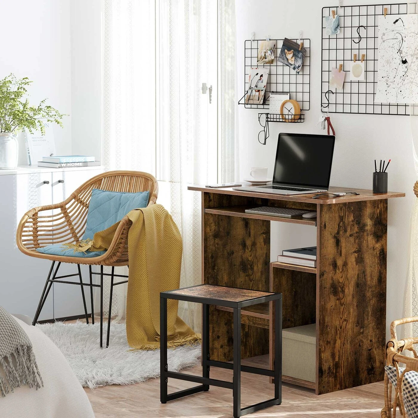 Aprašymas buvo automatiškai išverstas, gali pasitaikyti klaidų.Informacija apie gaminį: Spalva: vintažinė ruda Medžiaga: medžio drožlių plokštė Dydis: 80 x 45 x 74 cm (P x P x A) Plokštės storis: 15 mm Svoris: 20 kgPristatymo komplektas: 1 x kompiuterio stalas 1 x priedų paketas 1 x instrukcija (DE, EN, FR, ES, IT)
