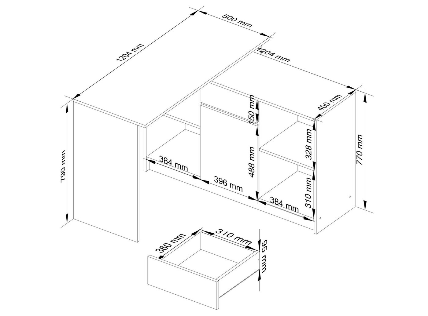 Aprašymas buvo automatiškai išverstas, gali pasitaikyti klaidų. Komplektas B-17 – tai išskirtinai apgalvotas baldas, apjungiantis kompiuterio kampinio stalo ir komodos funkcionalumą. Šis sprendimas leidžia maksimaliai išnaudoti turimą erdvę išlaikant naudojimo patogumą ir estetinę baldų išvaizdą. Jei reikia, elementus galima atjungti, keisti jų konfigūraciją į kairę arba dešinę. Dėl efektingo dizaino, madingos sonomos ąžuolo spalvos ir didelės talpos rinkinys puikiai tiks tiek biure, tiek namuose. Pateiktas komplektas atsparus įvairių tipų mechaniniai pažeidimai, tame tarpe ir dilimas, nes pagaminta iš aukščiausios kokybės medžiagų – 16 mm storio laminuotos plokštės, padengtos modernia ABS briauna, gaminama Kronospan. Komodos stalčius juda ant metalinių ritinėlių kreiptuvų. Baldams suteikiama 24 mėnesių garantija. Pateiktas rinkinys skirtas montuoti savarankiškai, todėl komplekte yra atitinkama instrukcija. - Rašomasis stalas iš Kronospan laminuotos plokštės, 16 mm atsparus trinčiai - Yra daug vietos bet kokiam išdėstymui - Aplankai lengvai telpa ant lentynų - Stalčiai juda ant metalinių ritinėlių kreiptuvų - Matomi kraštai padengti ABS briauna, kad būtų didesnis atsparumas pažeidimams - Montavimo rinkinio universalumas, derinant dešinę ir kairę. - Rašomasis stalas, skirtas montuoti savarankiškai - Rinkinį sudaro rašomasis stalas ir komoda - Instrukcija tiekiama – 24 mėnesių garantija
