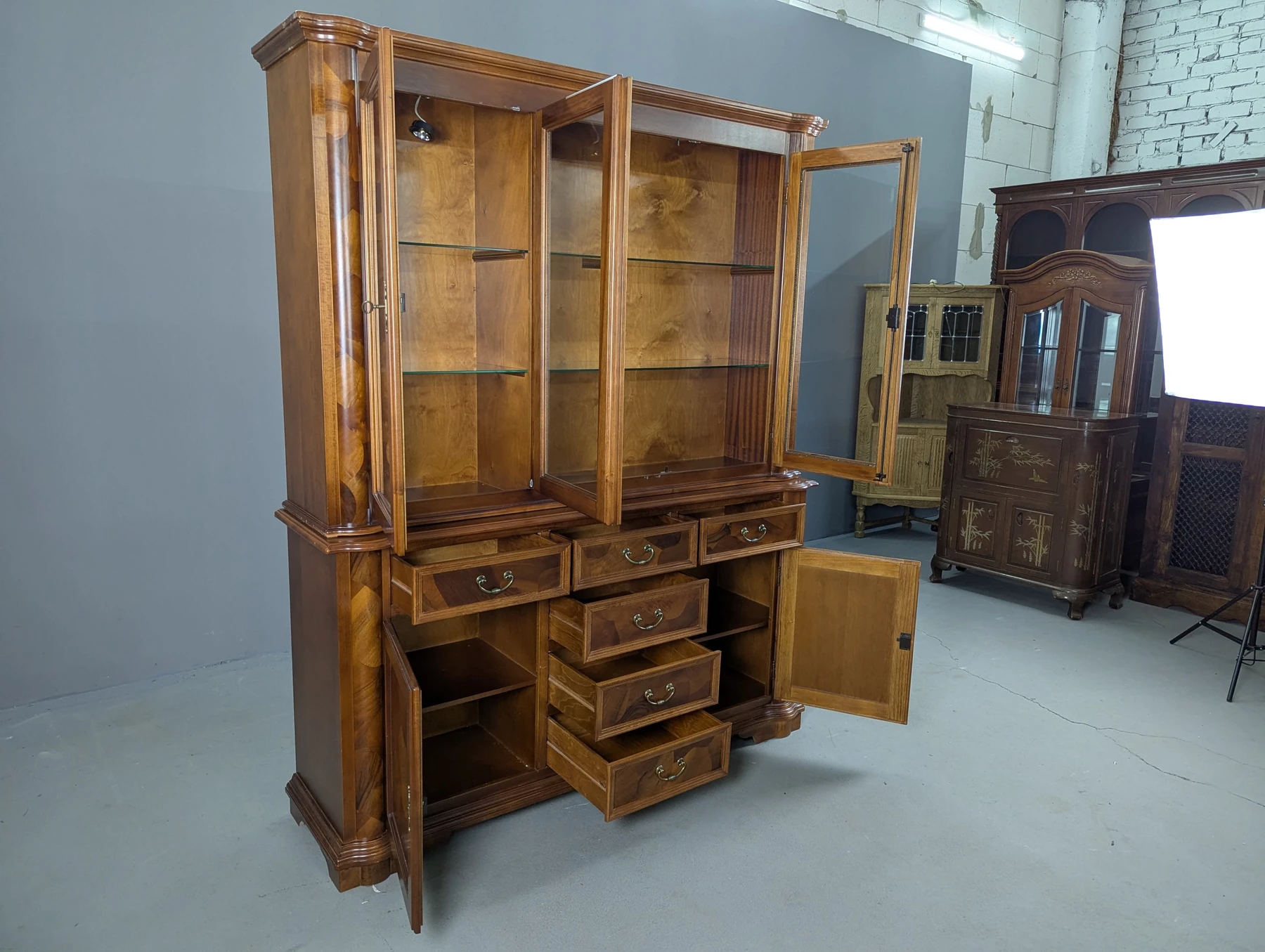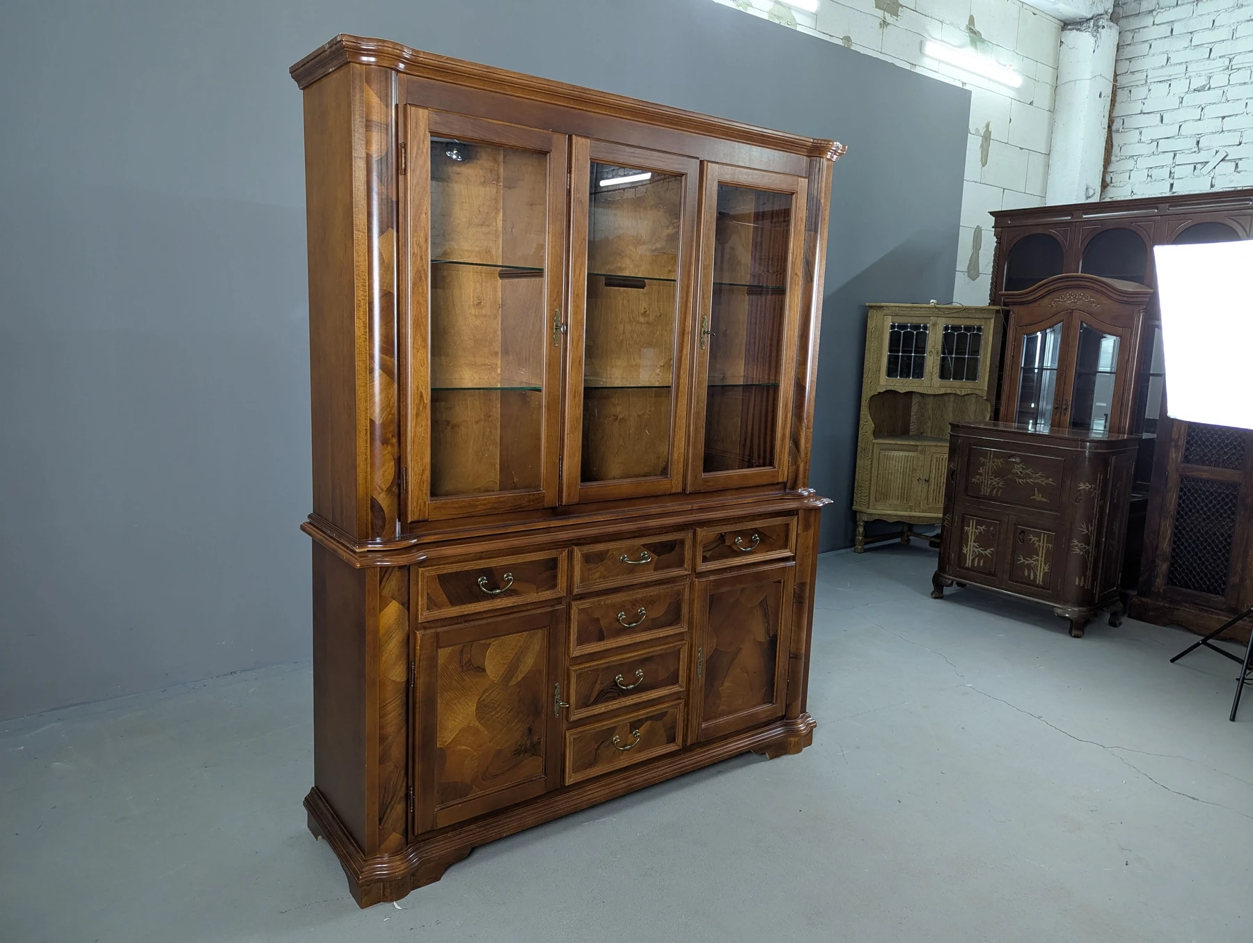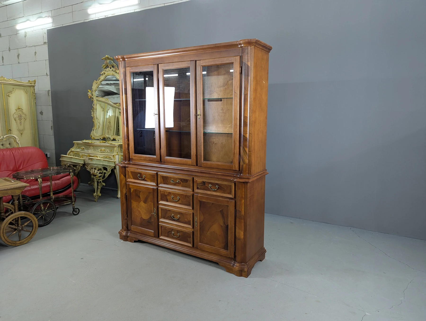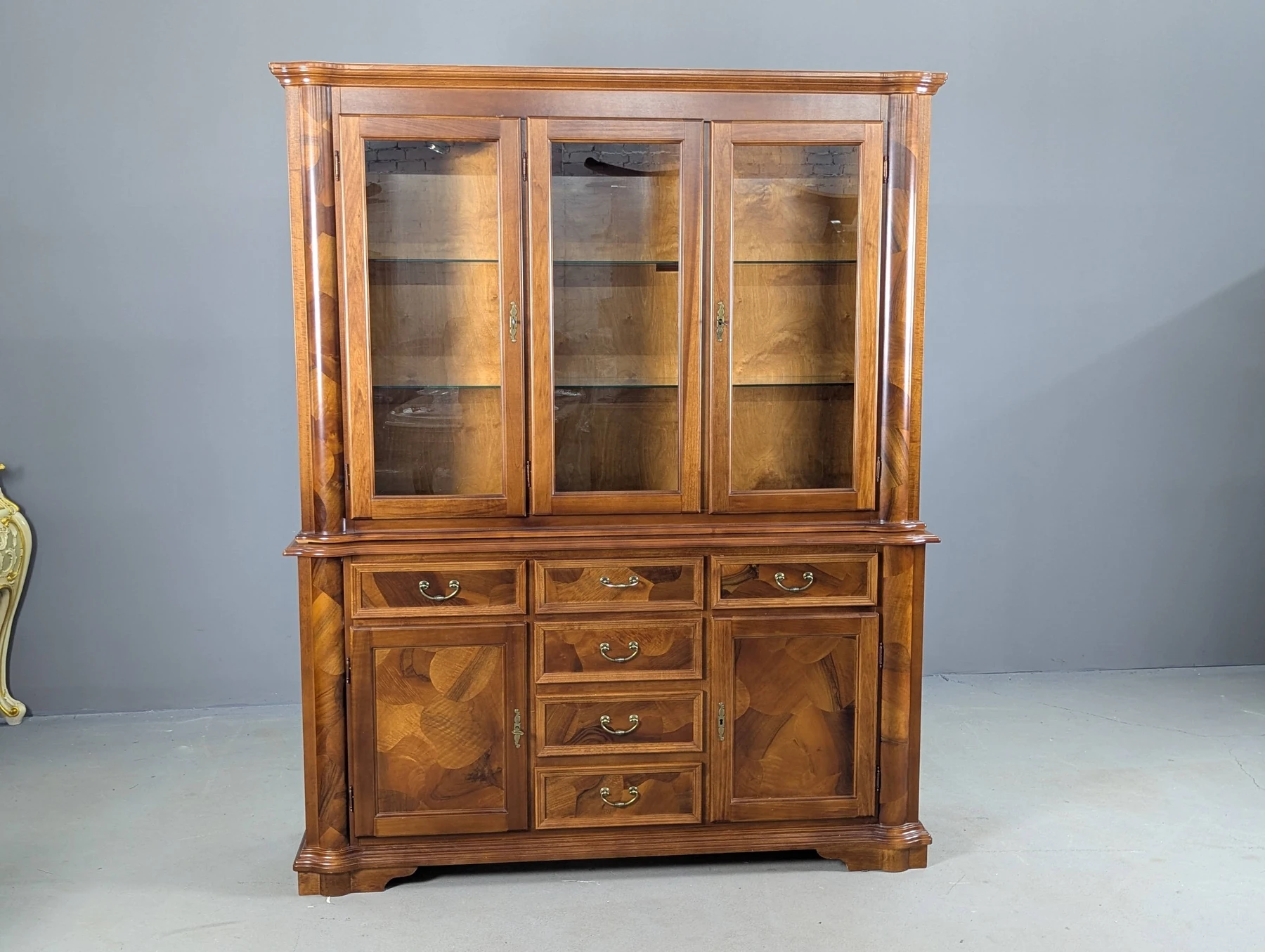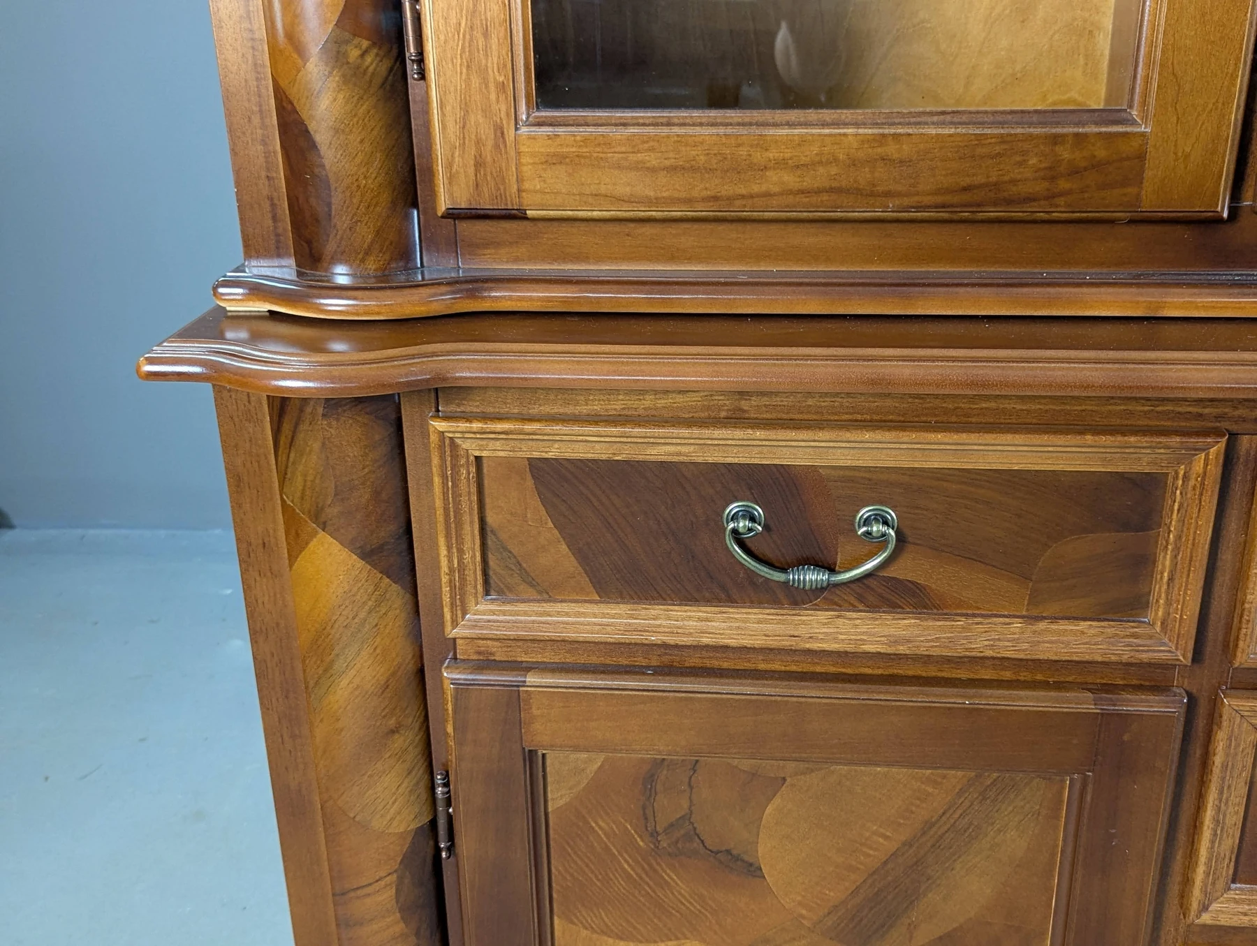 Itališko stiliaus indauja iš raudonmedžio faneruotės su stiklinėmis durelėmis, talpiais stalčiais ir uždaromis spintelėmis apačioje. Subtilūs medžio raštai ir aukštos kokybės apdaila suteikia baldui elegancijos ir ilgaamžiškumo pojūtį. Viršutinėje dalyje – stiklinės lentynos indams ar dekoracijoms eksponuoti, o apatinėje – funkcionalūs stalčiai ir spintelės. Puikiai tinka klasikiniam interjerui. Prie šios indaujos galima derinti tokio pat stiliaus komodą, matomą paskutinėje nuotraukoje.