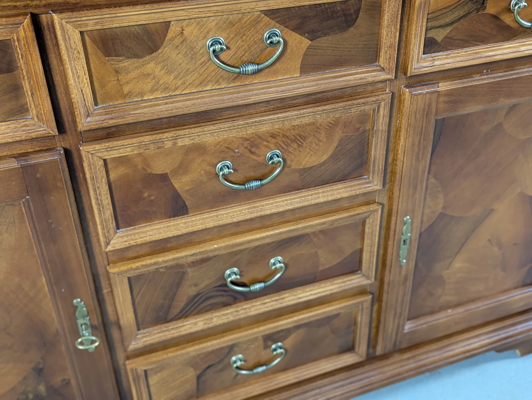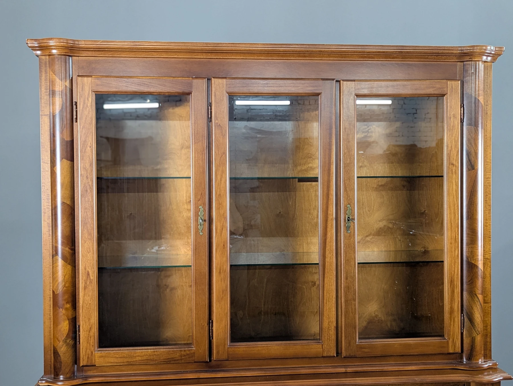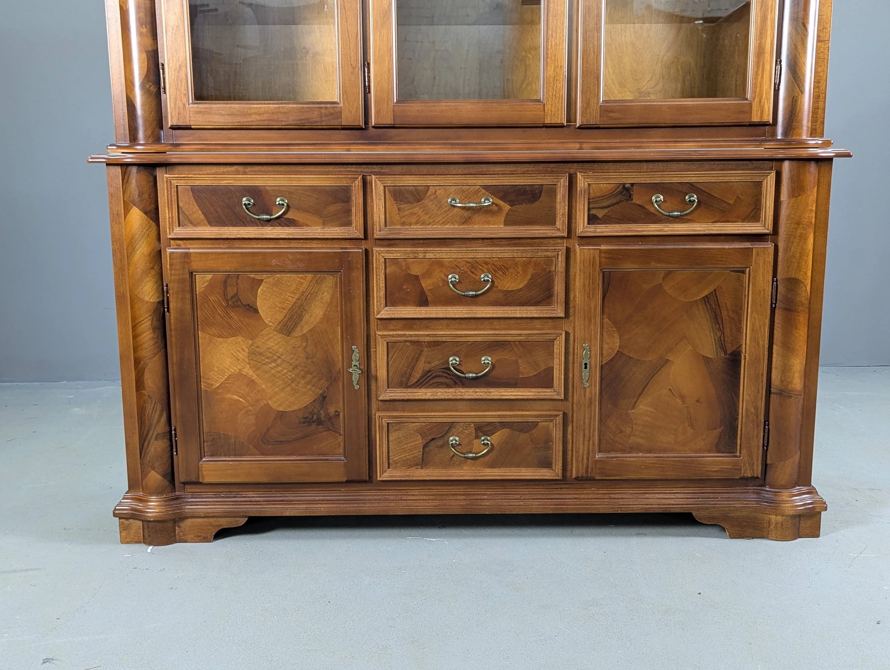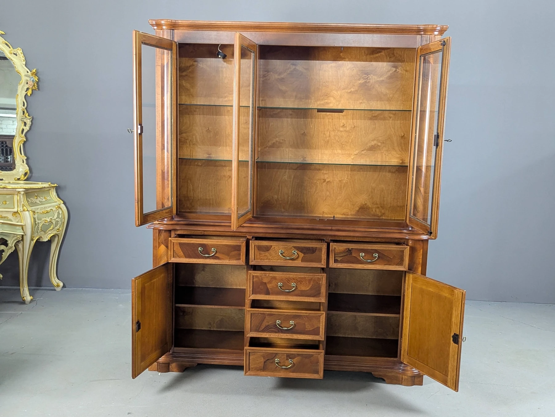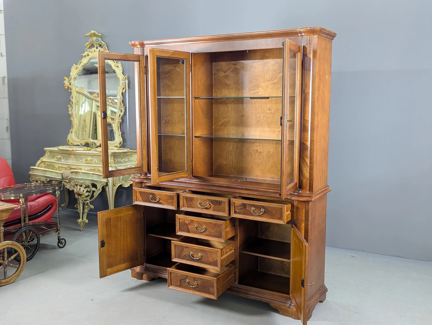 Itališko stiliaus indauja iš raudonmedžio faneruotės su stiklinėmis durelėmis, talpiais stalčiais ir uždaromis spintelėmis apačioje. Subtilūs medžio raštai ir aukštos kokybės apdaila suteikia baldui elegancijos ir ilgaamžiškumo pojūtį. Viršutinėje dalyje – stiklinės lentynos indams ar dekoracijoms eksponuoti, o apatinėje – funkcionalūs stalčiai ir spintelės. Puikiai tinka klasikiniam interjerui. Prie šios indaujos galima derinti tokio pat stiliaus komodą, matomą paskutinėje nuotraukoje.