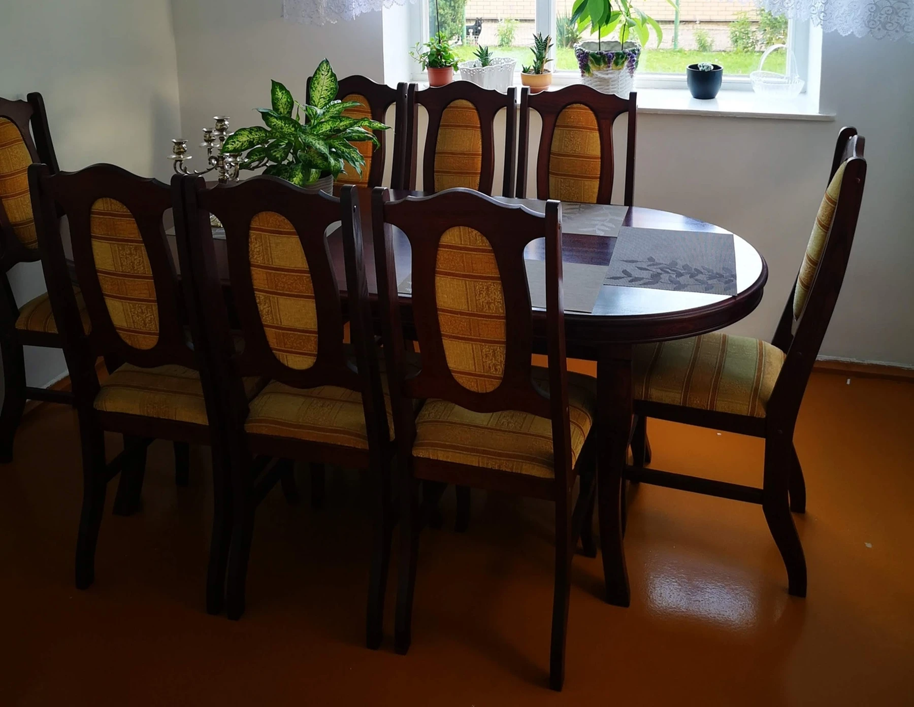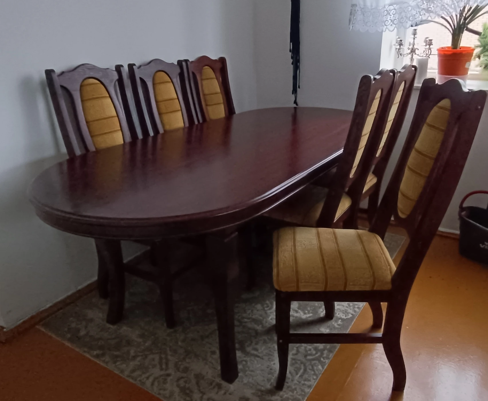 Raudonmedžio Valgomojo komplektas su 8 kėdėmis