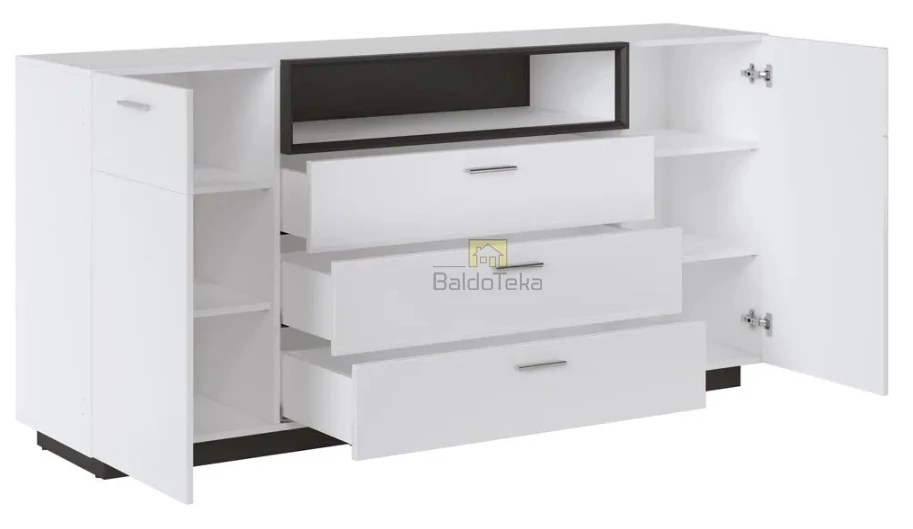 Spalva: korpusas – baltas matinis; fasadai – balti blizgūs/juodi.