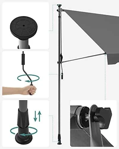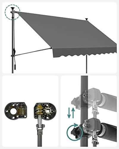 Aprašymas buvo automatiškai išverstas, gali pasitaikyti klaidų.Mėgaukitės vasara be sudėtingo surinkimo: ar norėtumėte markizės be skylių? Tada ši SONGMICS balkono tenta kaip tik jums. Jokio gręžimo ar varžtų – tereikia surinkti rėmą ir sureguliuoti stulpų bei markizės aukštį, kad stulpai tvirtai įsitvirtintų tarp grindų ir lubų. Reguliuojamas ir apsaugotas: Aukštos kokybės markizės audinys ne tik apsaugo jus nuo UV spindulių, bet ir prieš lietų. Naudodami švaistiklį galite reguliuoti markizės kampą ir plotį, nesvarbu, ar ji yra balkone, terasoje ar lauke, tai suteiks jums visišką apsaugą.Išsami informacija apie gaminį: Spalva: antracitas Medžiaga: milteliniu būdu dengti plieniniai strypai, aliuminis (ritininis vamzdis: Ø 38 mm), 280 g/m² poliesteris, PU danga Dydis: 300 x 130 cm (P x P) Aukštis: 2,2-3 m Svoris : 10,5 kg pristatymo apimtis : 1 x spaustukas tentas 1 x instrukcijos SONGMICS Pastabos: Surinkti turėtų 2 žmonės. Surinkę patikrinkite, ar stovo stulpai yra tvirti. Nenaudokite gaminio esant stipriam vėjui, lietui ar sningant. Pasikeitus orams, nedelsdami atitraukite markizę, kitaip gali būti padaryta žala. Toliau nesukite švaistiklio, kai markizės audinys yra visiškai ištrauktas. Norėdami išvalyti audinį, jį reikia sudrėkinti minkštu vandeniu arba švelnaus ploviklio šluoste, kurią reikia nuvalyti.