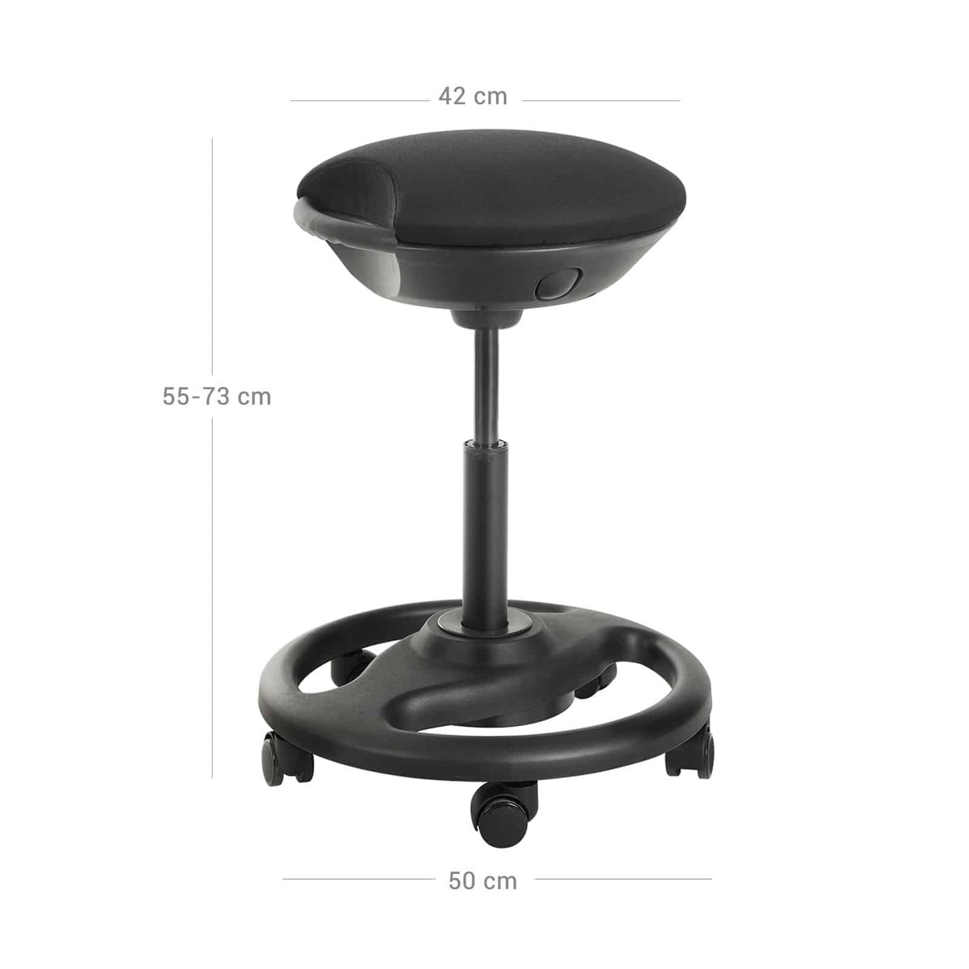 Aprašymas buvo automatiškai išverstas, gali pasitaikyti klaidų.Kietas sėdėjimas liko praeityje: šiuolaikiniuose biuruose dabar yra taburetės ant ratukų, kurios leidžia aktyviai dirbti. Jauskitės patogiai ant Ø 42 cm, gerai paminkštintos šios darbo kėdės sėdynės ir toliau judėkite. Stabilių ratukų dėka kėdę galima pasukti 360°, pakreipti 10° į visas puses ir, žinoma, perkelti per kambarį. Norėdami tai padaryti, atsikelkite ir ištraukite taburetę per biurą naudodami integruotą rankeną. Kitų šios darbo kėdės privalumų apžvalga: Sėdynės aukštis reguliuojamas nuo 55 iki 73 cm; taburetę taip pat galite naudoti prie sėdėjimo-stovėjimo-stalo sėdimo-stabdymo mechanizmo; Saugumo sumetimais ratukai blokuojasi vos atsisėdus ant kėdės. Tvirtas, Ø 50 cm pagrindas su vairu atrodo SGS patikrintas dujų balionas, telpa po stalu, taupydamas vietąInformacija apie gaminį: Spalva: juoda Medžiaga: poliesteris, putplastis, nailonas, aliuminis, geležis Bendras dydis: 50 x 55-73 cm (Ø x H) Sėdynės skersmuo: 42 cm Sėdynės skersmuo be rankenos: 35 cm Pagrindo skersmuo: 50 cm Sėdynės aukštis : 55-73 cm Sėdynės pagalvėlės storis: 5 cmSvoris: 9 kgMaks. Statinė apkrova: 110 kg Pristatymo komplektas: 1 x sėdynės pagalvėlė 1 x pagrindas 5 x ratukai 1 x dujų balionas 1 x guminis padas SONGMICS Pastabos: Nenaudokite šios taburetės ant nelygių ar lygių grindų. Sėdėdami visada palikite vieną ar abi kojas ant grindų taburetę galima pakreipti 10°. Prašome neviršyti šio judesio diapazono. Pavojus nukristi! Nesėdėkite ant taburetės krašto. Vaikams taburete leidžiama naudotis tik prižiūrint suaugusiems. Nėščios moterys taip pat turėtų naudoti išmatas atsargiai.
