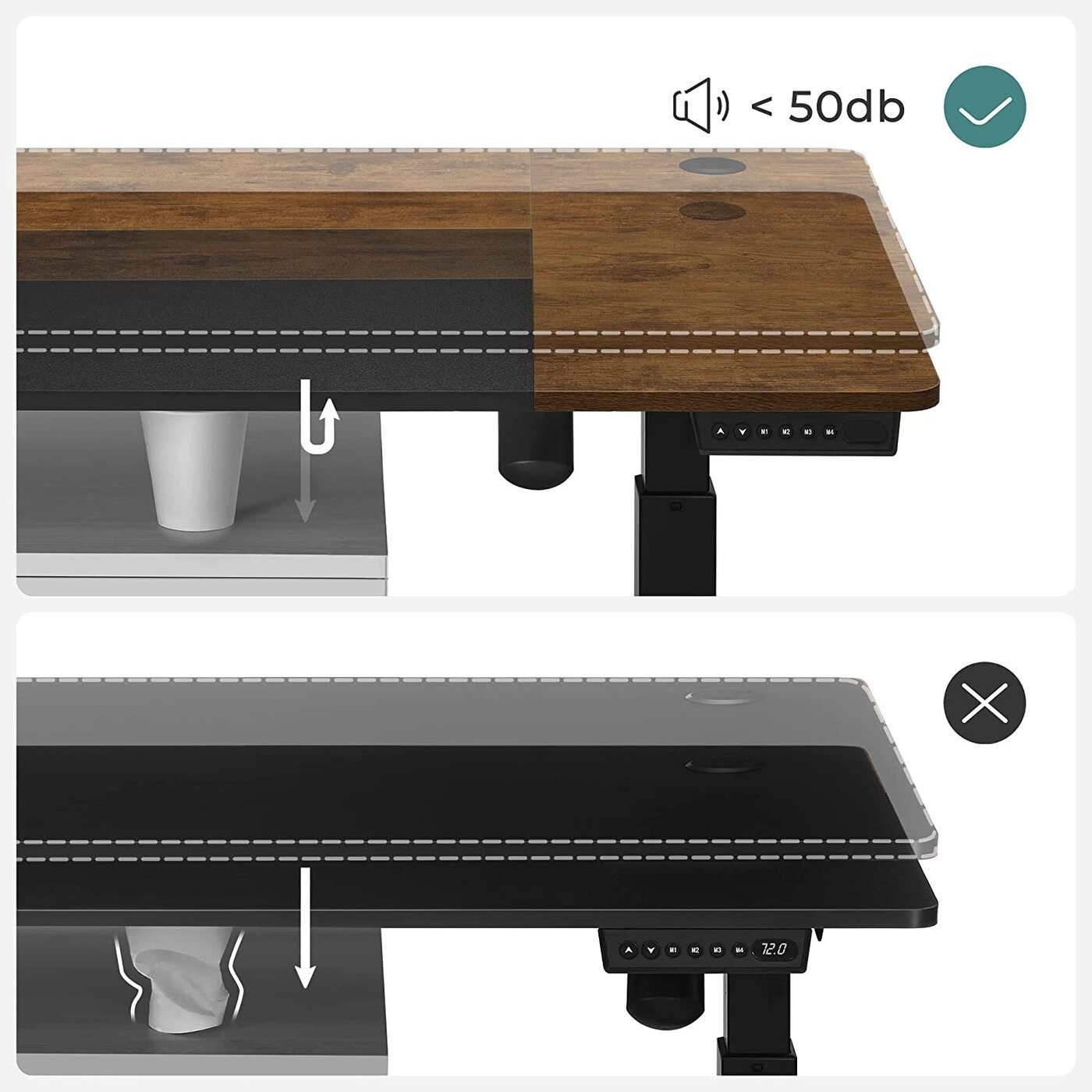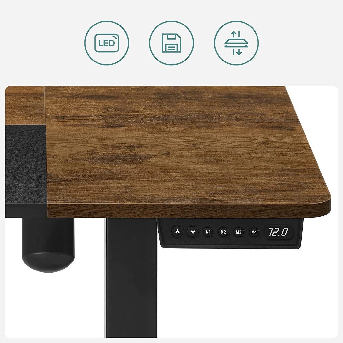 Aprašymas buvo automatiškai išverstas, gali pasitaikyti klaidų.Elektrinio stalo privalumai: Reguliuojamas aukštis keičiant pozas. 4 skirtingų aukščių saugykla greitam reguliavimui Švelnus, mažai triukšmingas aukščio reguliavimas Kišenė šone daugiau užsakymams Prekės informacija: Spalva: vintažinė ruda-juoda Medžiaga: medžio drožlių plokštė, plienas, ne -austas audinys Dydis: 140 x 60 x (72-120) cm Stalviršio storis : 1,5 cm Svoris: 28 kg Maks. Keliamoji galia: 80 kgPakuotės turinys: 1 x elektrinis stalinis stovas 1 x laikymo krepšys 2 x kabliukai 1 x priedų pakuotė 1 x instrukcija Nestatykite stalo tiesiai prie sienos Šis gaminys skirtas naudoti tik patalpose. Visus elektrinius komponentus laikykite toliau nuo skysčių. Vienu metu gaminį naudokite tik ne ilgiau kaip 2 minutes. Pasibaigus šiam laikotarpiui, stalo rėmas neturėtų būti judinamas 18 minučių, kad nepažeistumėte variklio. Neardykite šio gaminio be profesionalo patarimo. Nedėkite ant gaminio sunkių daiktų, viršijančių maksimalią 80 kg apkrovą. Nenaudokite lizdai ar adapteriai su per didele įtampa.