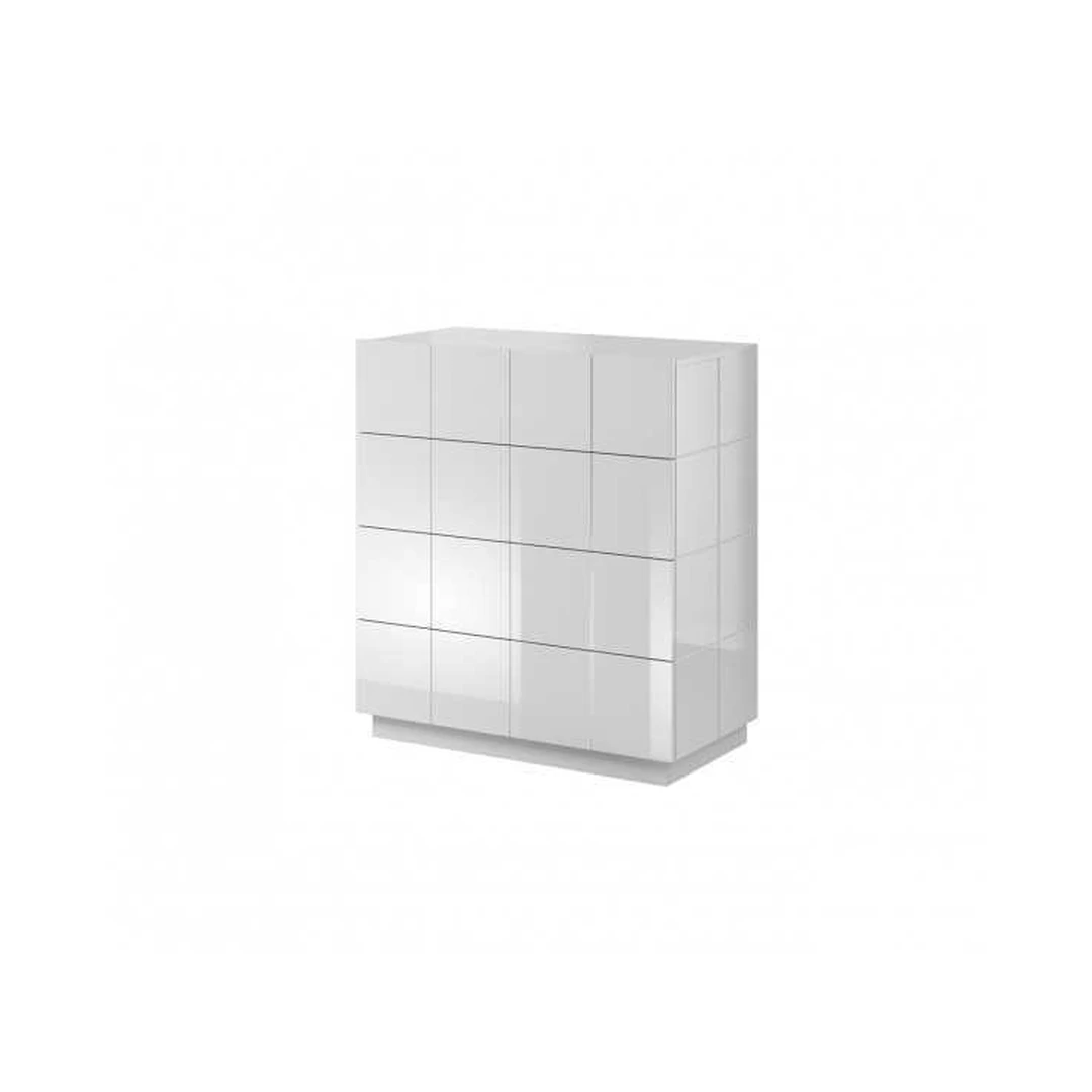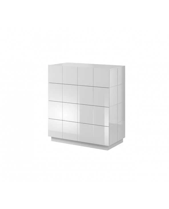 | Medžiaga | Šonai ir viršus: blizgi frezuota MDF plokštė Priekinės dalys / atvartai: blizgi frezuota MDF plokštė Kiti elementai: laminuota baldų plokštė |