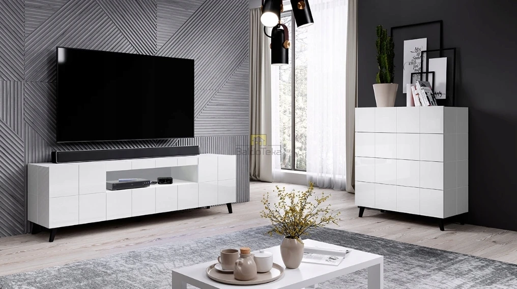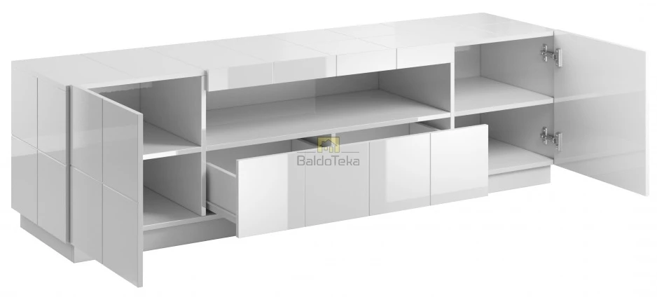 Komplektacijoje pridedamas cokolis (7 cm) ir juodos spalvos kojelės (12 cm).