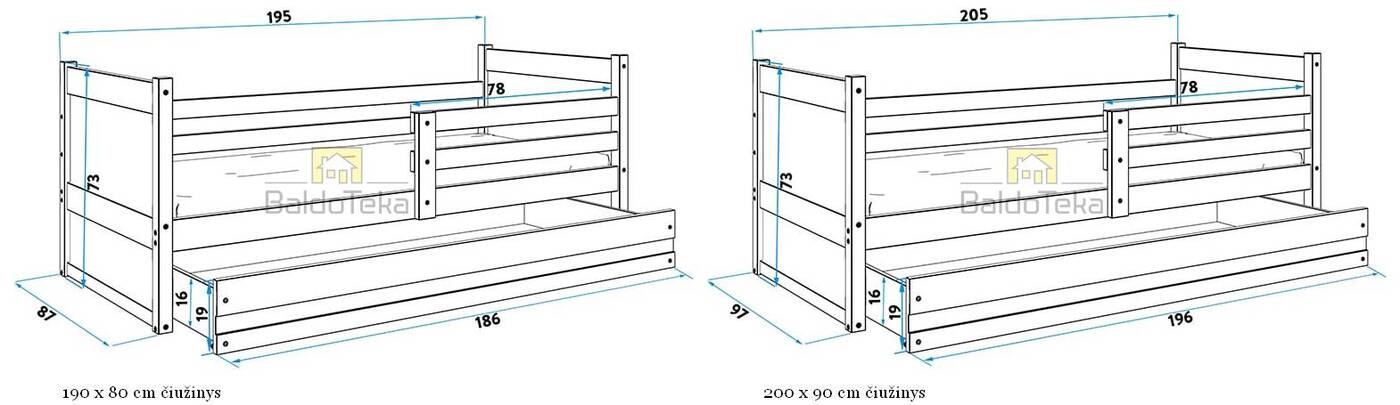 RICO 1 (balta) bms vaikiška lova + čiužinys