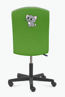 Dekoracija ant nugarėlės (tik gobelenui) – 6 €Ergonomiškai išformuota sėdima dalis bei kėdės nugaros atlošas. Tvirta, patikima konstrukcija. Kampas tarp atlošo ir sėdimosios dalies užtikrina taisyklingą vaiko sėdėseną. Kėdės aukštis reguliuojamas pneumatiniu pakelėju. Platus audinio spalvų pasirinkimas: poliesteris, vilna, dirbtinė ar natūrali oda. Paveiksliuko ant atlošo pasirinkimas iš 3-jų galimų. Galimas skirtingų spalvų derinys atlošui ir sėdimai daliai.