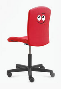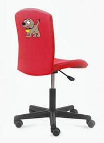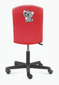 Dekoracija ant nugarėlės (tik gobelenui) – 6 €Ergonomiškai išformuota sėdima dalis bei kėdės nugaros atlošas. Tvirta, patikima konstrukcija. Kampas tarp atlošo ir sėdimosios dalies užtikrina taisyklingą vaiko sėdėseną. Kėdės aukštis reguliuojamas pneumatiniu pakelėju. Platus audinio spalvų pasirinkimas: poliesteris, vilna, dirbtinė ar natūrali oda. Paveiksliuko ant atlošo pasirinkimas iš 3-jų galimų. Galimas skirtingų spalvų derinys atlošui ir sėdimai daliai.