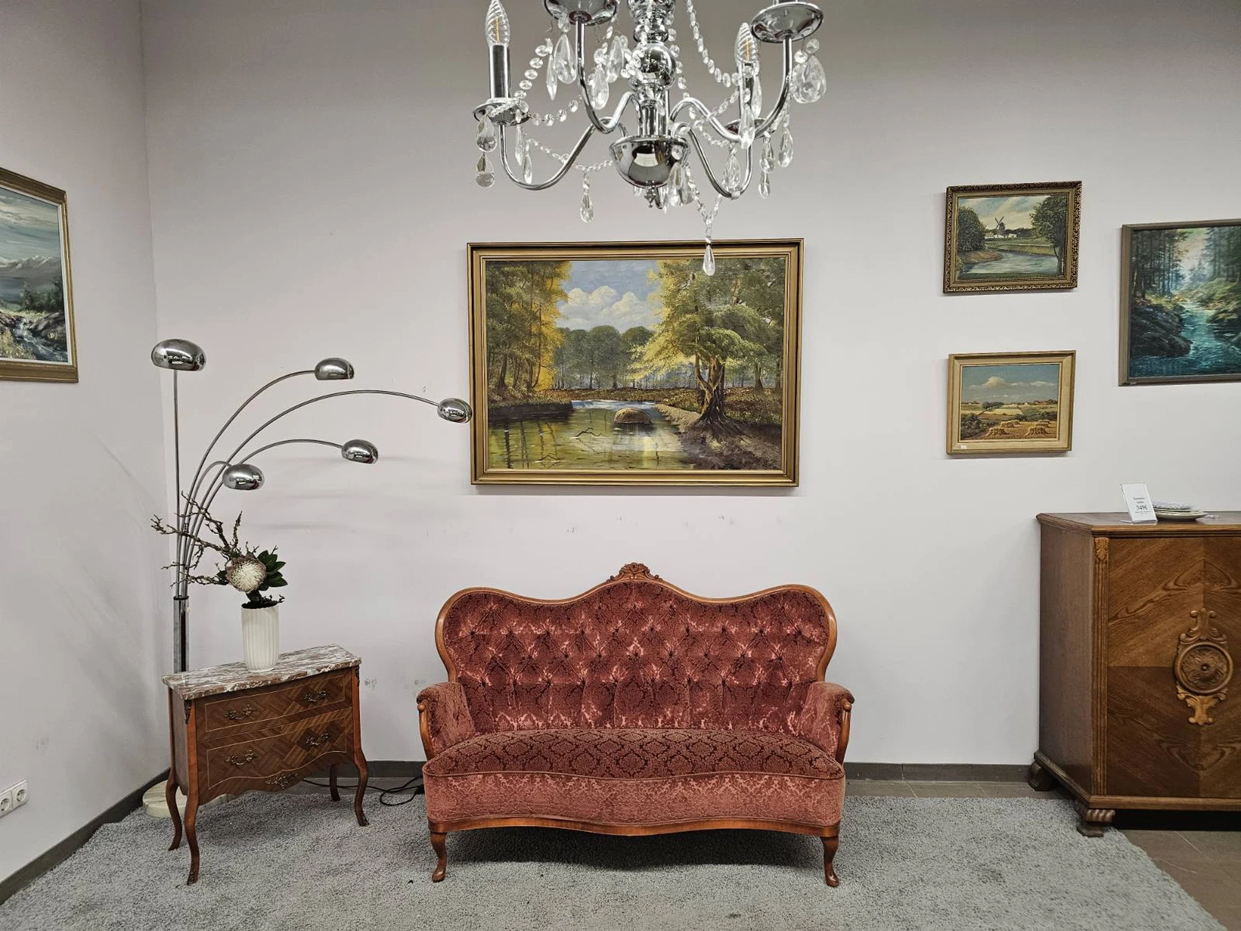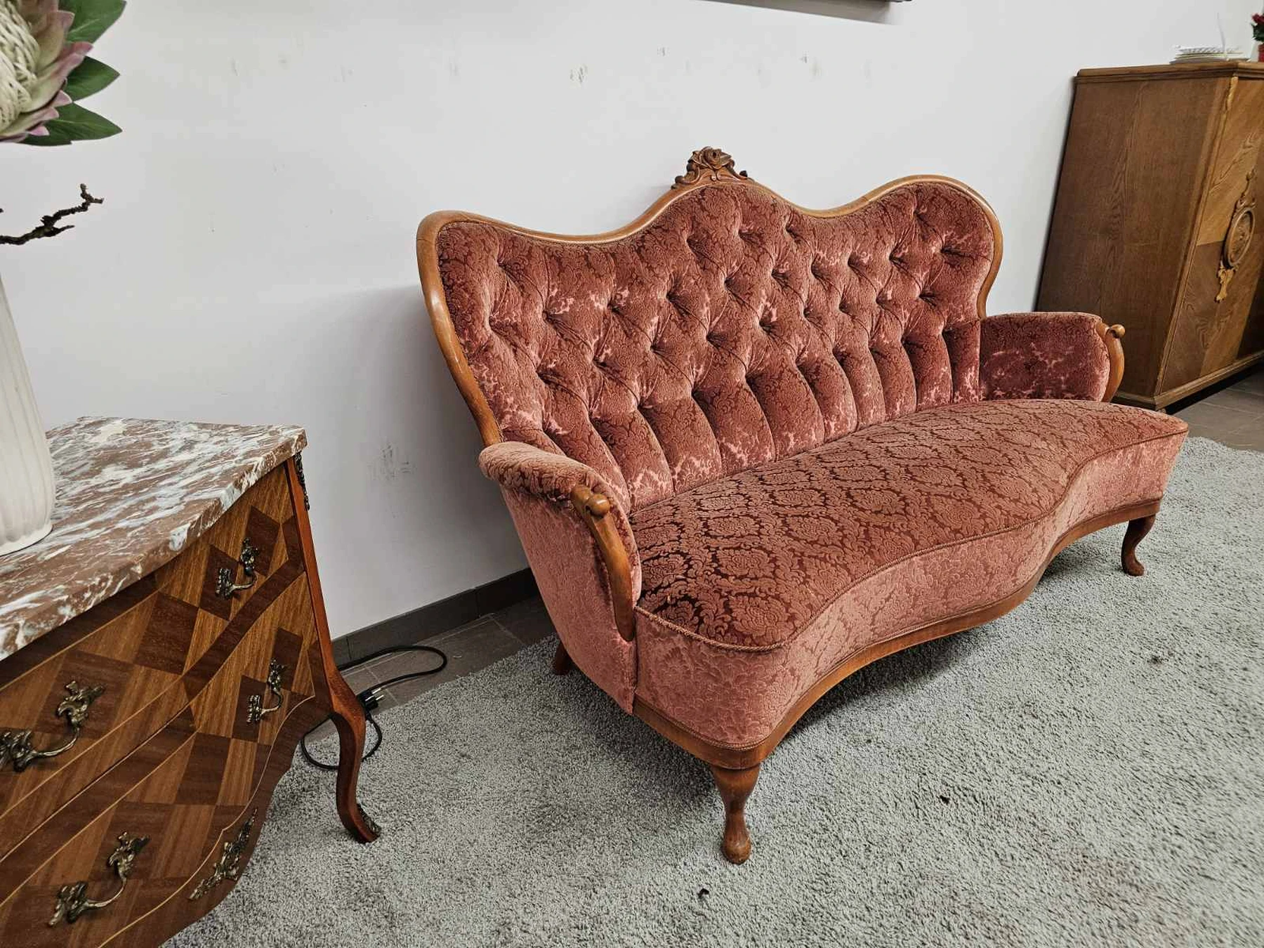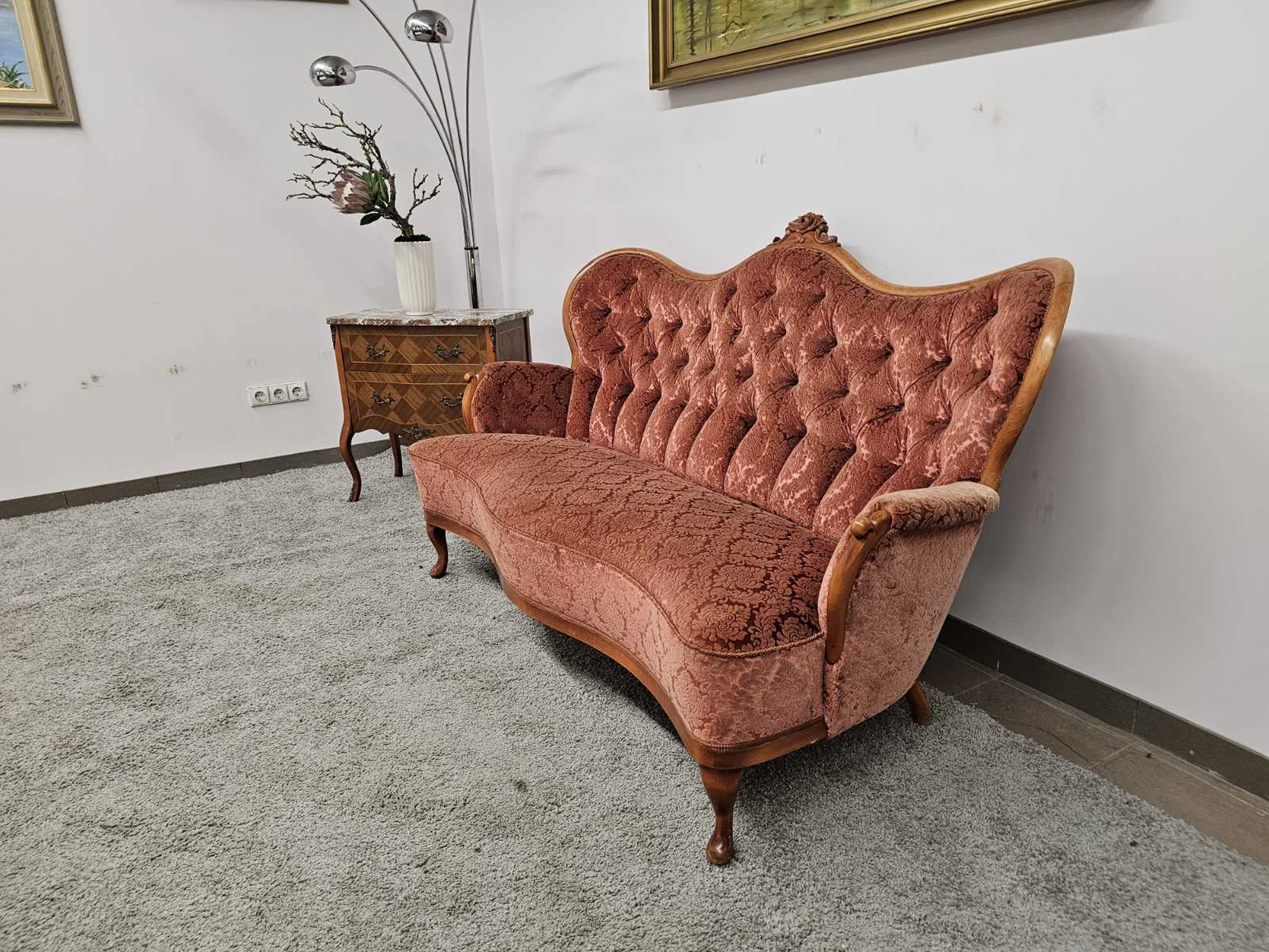 Rokoko stiliaus trivietė sofa. Matmenys: ilgis 1,65m.