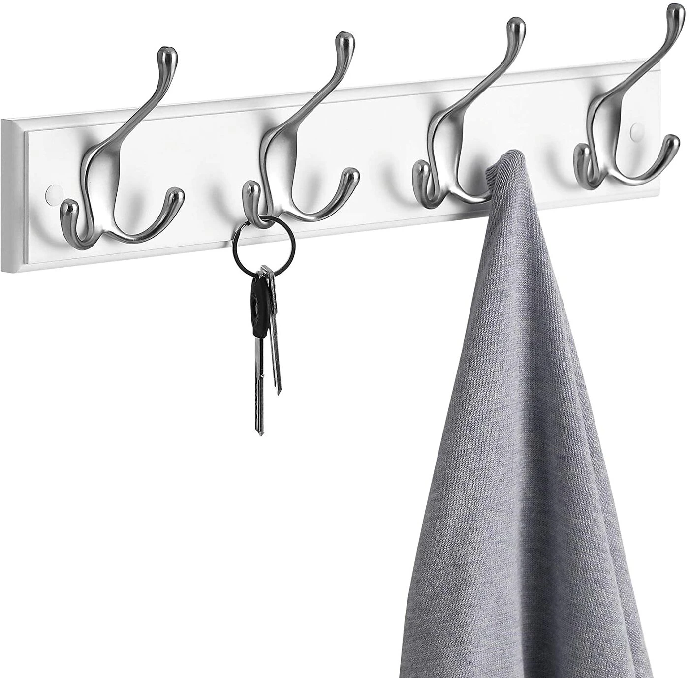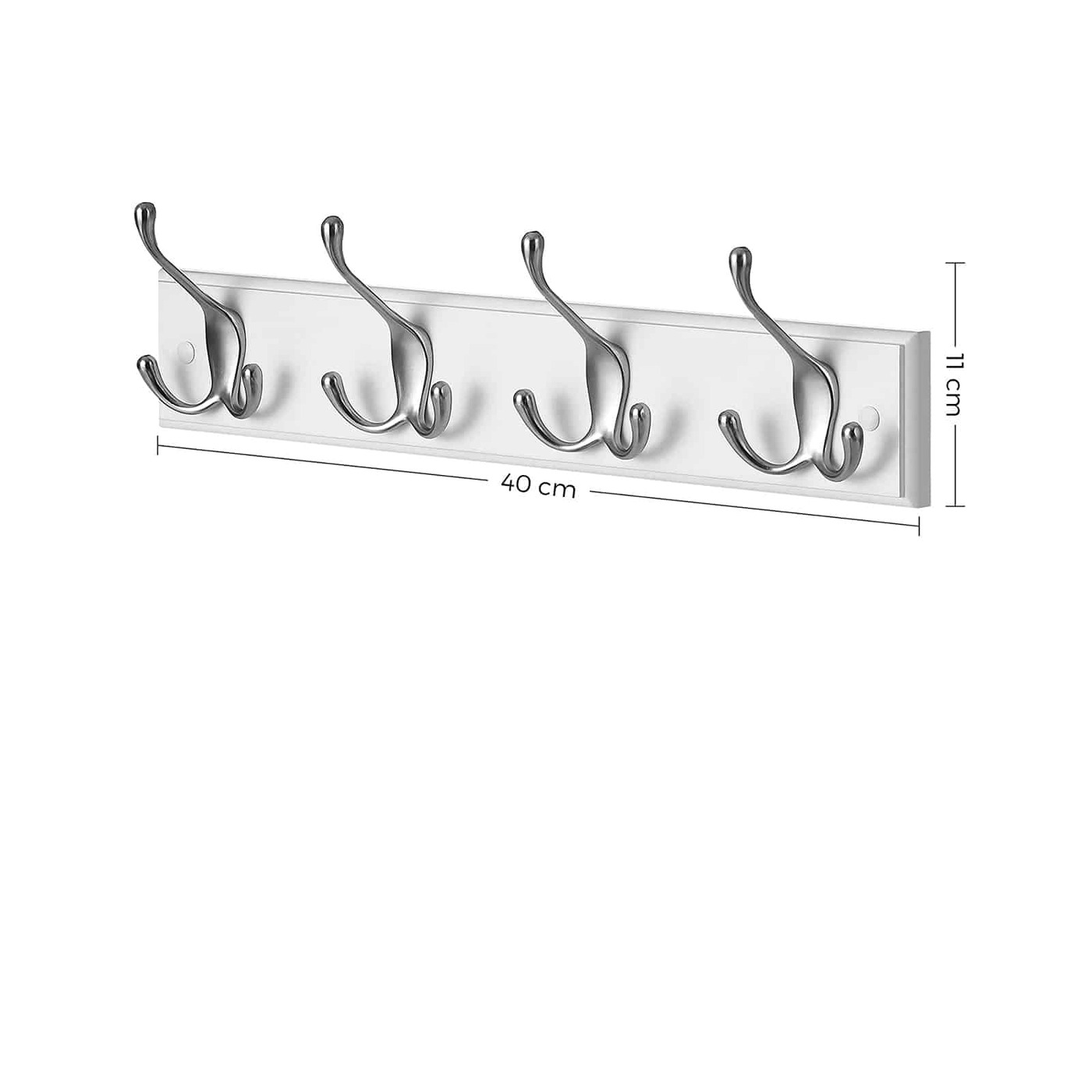 Aprašymas buvo automatiškai išverstas, gali pasitaikyti klaidų.skraistėmis ir skaromis pakabintos durų rankenos; kėdės apgultos krepšiais, raktais ir skrybėlėmis... Skamba pažįstamai? Jokiu problemu! Ši SONGMICS sieninė rūbų kabykla padeda įvesti tvarką jūsų namuose. Paltų kabykloje yra 4 giliai išlenkti kabliukai, kuriuose yra daug vietos visų rūšių drabužiams ir daiktams. Dėl baltos-sidabro spalvų derinio šis kabliukas puikiai dera su kitais baldais, todėl yra laukiamas svečias kiekviename koridoriuje, fojė, vonioje ar miegamajame Išsami informacija apie gaminį: Spalva: balta-sidabrinė Medžiaga: MDF (vidutinio tankio medienos plaušų plokštė ), cinko lydinys Dydis: 40 x 11 x 7 cm (P x P x A) Svoris: 0,5 kg Maks. statinė apkrova: 15,9 kgPakuotės turinys: 1 x Sieninių paltų kabykla 1 x Priedai Paketas 1 x Instrukcijos SONGMICS Pastabos: Nenaudokite šio gaminio lauke ir saugokite jį nuo lietaus. Įstatykite šį gaminį ant tvirtos sienos arba medinių stulpų, kad užtikrintumėte sieninės rūbų kabyklos stabilumą ir atsparumą .