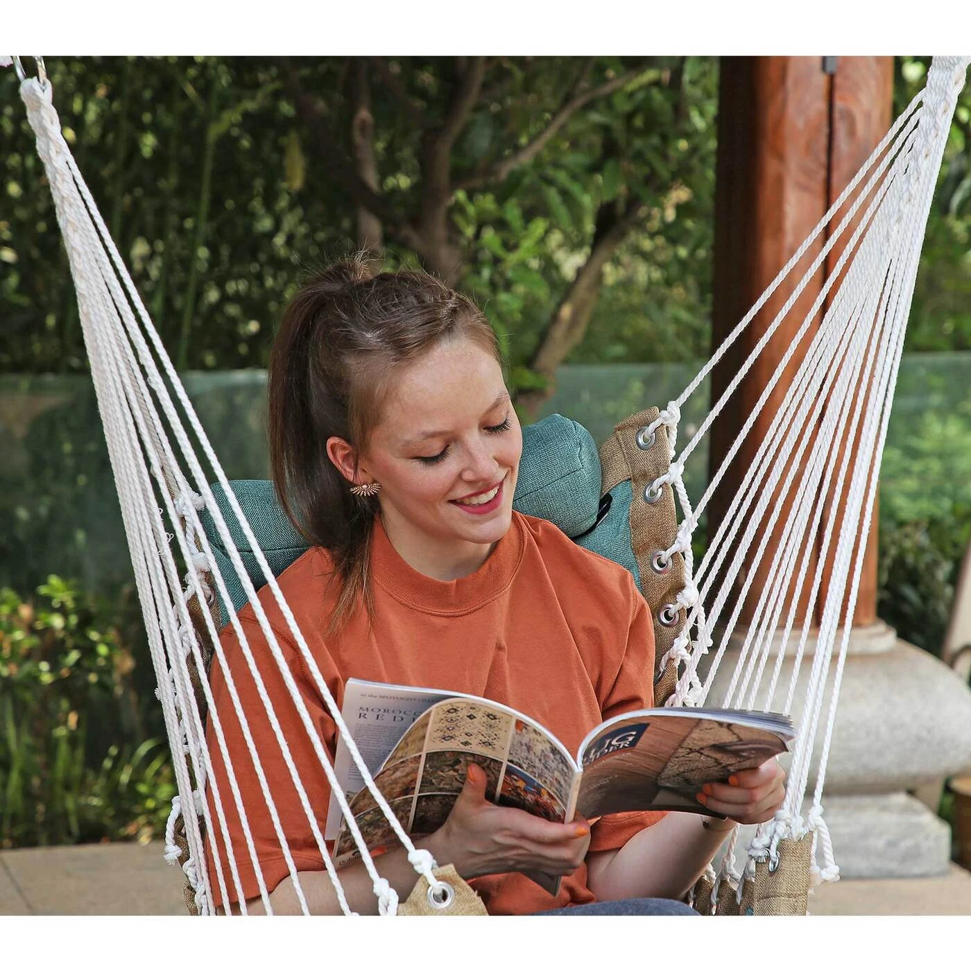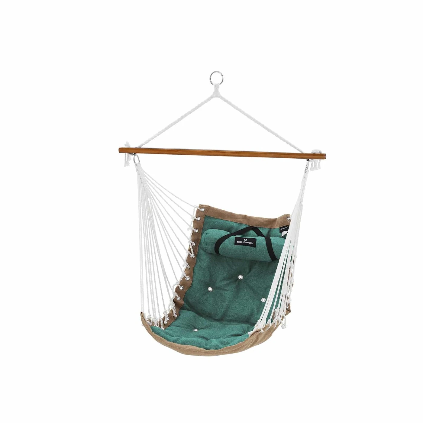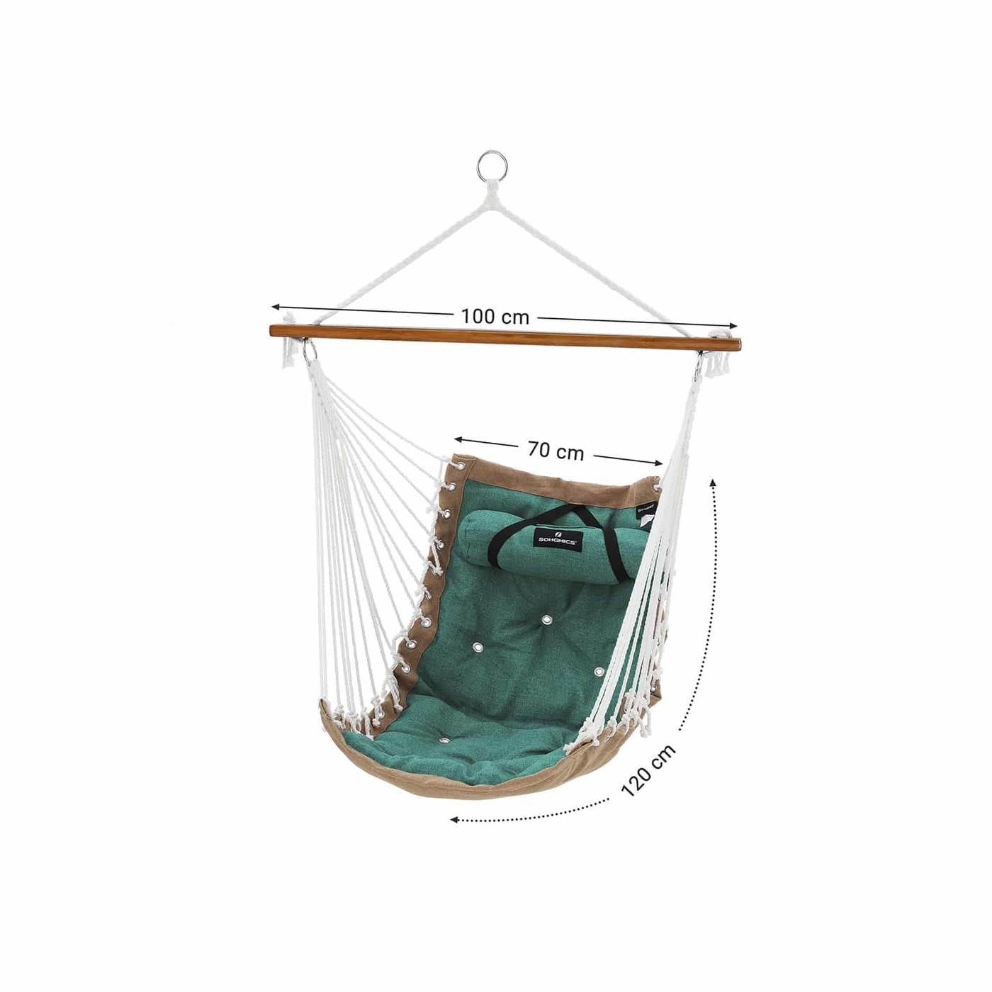 Aprašymas buvo automatiškai išverstas, gali pasitaikyti klaidų.Patalpoje arba lauke Pakabinkite šį fotelį sode arba terasoje ir susikurkite savo poilsį. Čia galite paskaityti knygas ar ramiai pailsėti po pietų. Arba sukurkite ramybės oazę savo miegamajame ar svetainėje su šia pakabinama kėde. Nesvarbu, ar lauke karšta, ar šalta, galite prisiglausti kaip katė, klausytis muzikos ar žiūrėti filmą ir atsikratyti kasdienės įtampos. Kiekvienas nusipelno atsipalaidavimo po ilgos dienos Gražių dalykų, kuriais turėtume pasidalinti su savo šeima ar draugais. Tačiau jei ši pakabinama kėdė tokia patogi, kad norite ją naudoti patys, galbūt norėsite užsisakyti dvi! Pakabinkite juos greta, tada galėsite sėdėti ir kalbėtis su draugais, mėgaudamiesi gamtos grožiu savo sode. Informacija apie gaminį: - Spalva: žalia-chaki - Medžiaga: lino imitacija, poliesterio užpildas, bambukas - Sėdynės matmenys: 70 x 60 cm (I x P) - Atlošo matmenys: 70 x 60 cm (P x P) - Svoris: 2 ,5 kg - Maksimali statinė apkrova: 200 kgPristatymo komplektas: - 1 x pakabinama kėdė - 1 x pagalvėlė - 1 x instrukcijos (DE, EN, FR, ES, IT) SONGMICS Pastabos: - Vaikai kabamąja kėde gali naudotis tik prižiūrimi suaugusiųjų. - Dėl gaminio spalvos pakitimai skirtinguose monitoriuose gali būti spalvinių nukrypimų.- Mūsų nurodyti matmenys buvo nustatyti rankiniu būdu išmatuojant, todėl gaminys gali skirtis iki 5 cm.