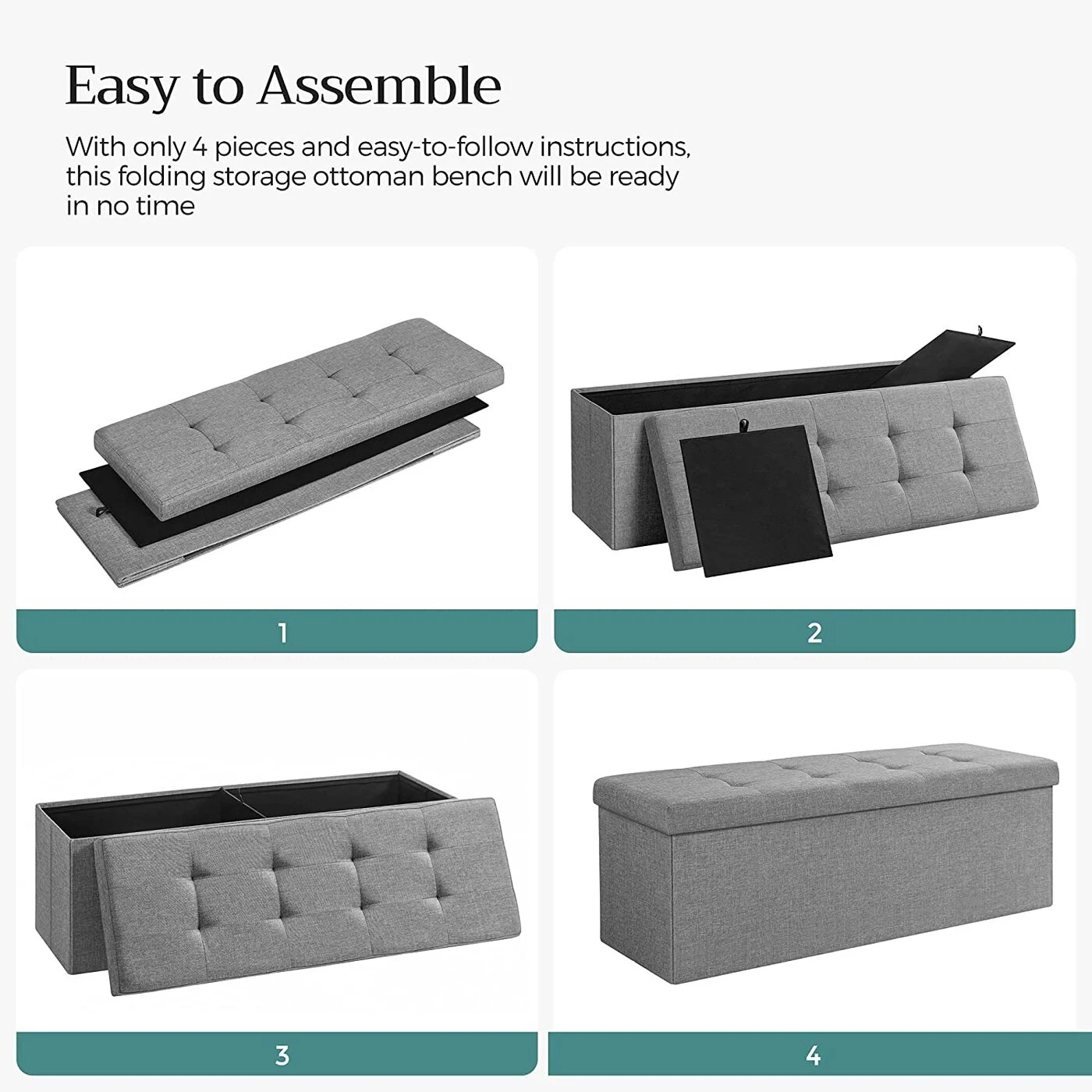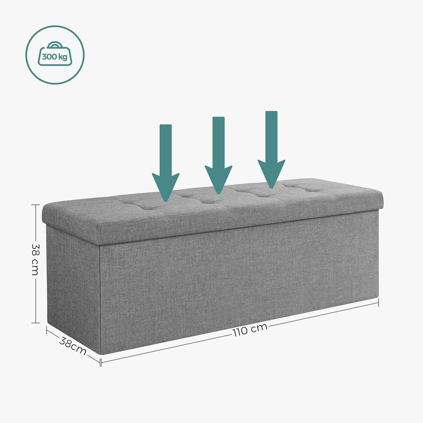 Aprašymas buvo automatiškai išverstas, gali pasitaikyti klaidų. Sėdėti, laikyti, puoštiŠi SONGMICS daiktadėžė puikiai papildys jūsų namų apstatymą. Dėl protingo dizaino daiktadėžė tinka įvairiems tikslams ir tarnauja kaip praktiškas batų suoliukas, lovos skrynia ar papildoma sėdima vieta svetainėje, ypač mažesniuose butuose. Jauskitės patogiai ant minkšto suoliuko apmušalo ir perbraukite ranka per patogų lino užvalkalo imitaciją. Ne tik ši itin patvari, bet ir visa konstrukcija pagaminta iš aukštos kokybės MDF, kurio maksimali statinė apkrova pasiekia 300 kg.Prekės informacija: - Spalva: šviesiai pilka - Medžiaga: lino imitacija, MDF (vidutinio tankio medienos plaušų plokštė), putplastis - Matmenys (išorėje): 110 x 38 x 38 cm (P x A x G) - Matmenys (viduje): 107 x 33,5 x 34 cm (I x P x A) - Išmatavimai (sulankstyti): 110 x 38 x 7 cm (P x P x A) - Svoris: 8,6 kg - Maksimali statinė apkrova: 300 kg Pristatymo komplektas: - 1 x sėdynės krūtinė SONGMICS pastabos: - Krūtinė nėra žaislas! Mažiems vaikams leidžiama naudoti tik tiesiogiai prižiūrint suaugusiems.