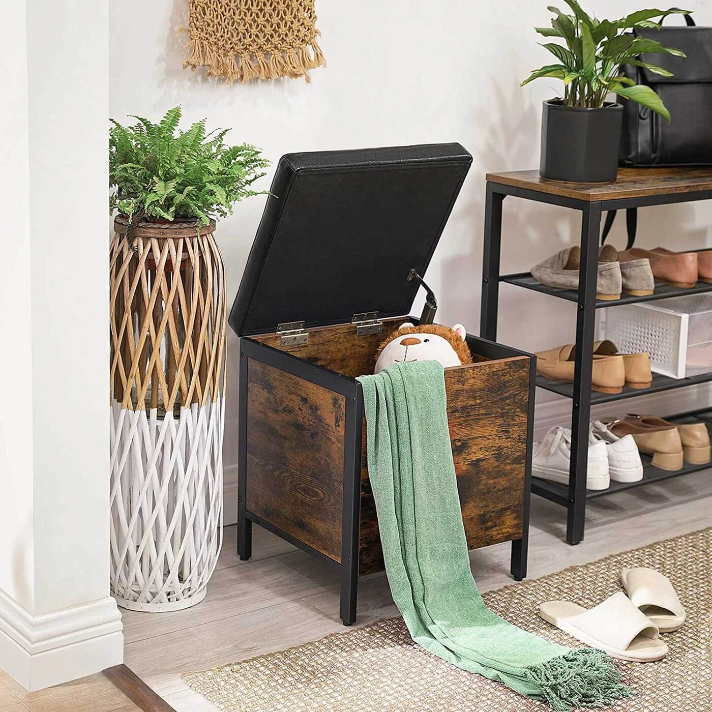 Aprašymas buvo automatiškai išverstas, gali pasitaikyti klaidų.Prekės informacija: - Spalva: vintažinė ruda-juoda - Medžiaga: medžio drožlių plokštė, plienas, PU sintetinė oda, putplastis - Dydis: 40 x 40 x 50 cm (P x P x A) - Svoris: 9,4 kg - Maksimali statinė apkrova sėdynė: 90 kg - Maksimali krūtinės dėžės statinė apkrova: 20 kg Pristatymo komplektas: - 1 x taburetė su daiktadėže - 1 x priedas - 1 x rankinis (DE, EN, ES, FR, IT) VASAGLE Pastabos : - Saugumo sumetimais vaikams neleidžiama juo lipti ar žaisti su gaminiu. - Maksimali gaminio statinė apkrova yra 90 kg. Prašome neviršyti šio didžiausio svorio.