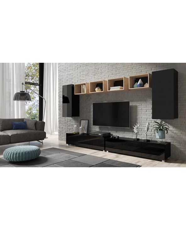 D - Karkasas juodas / priekinė dalis blizgi juoda + ąžuolas "Artisan