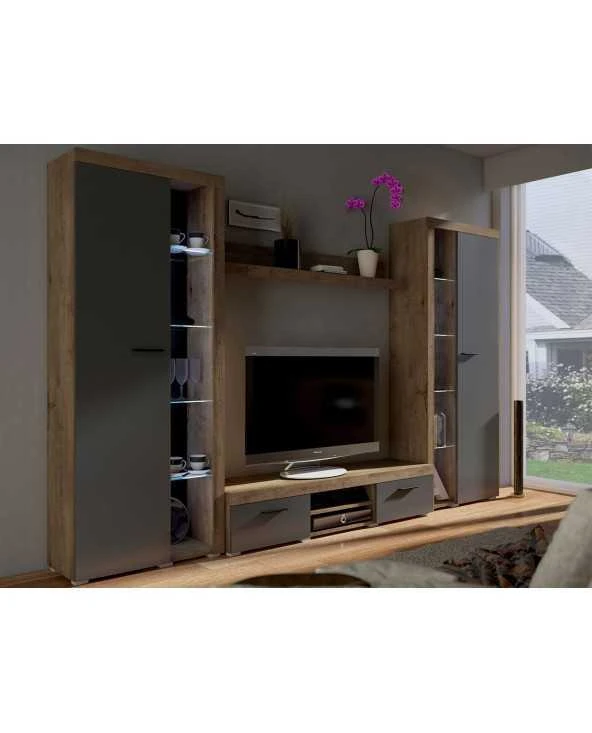 Kairės pusės aukštas įrenginys Dešinysis aukštas įrenginys RTV spinta Pakabinama lentyna | ||