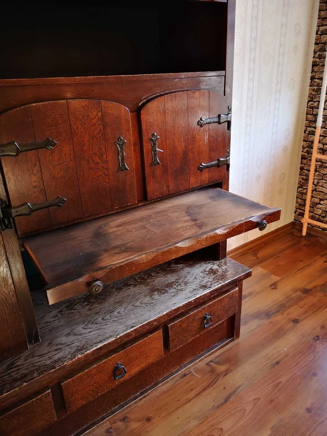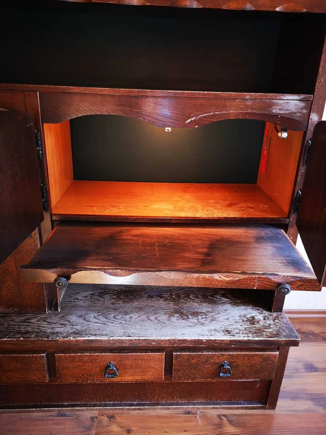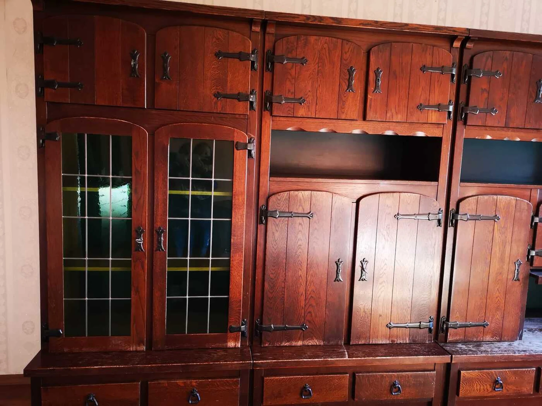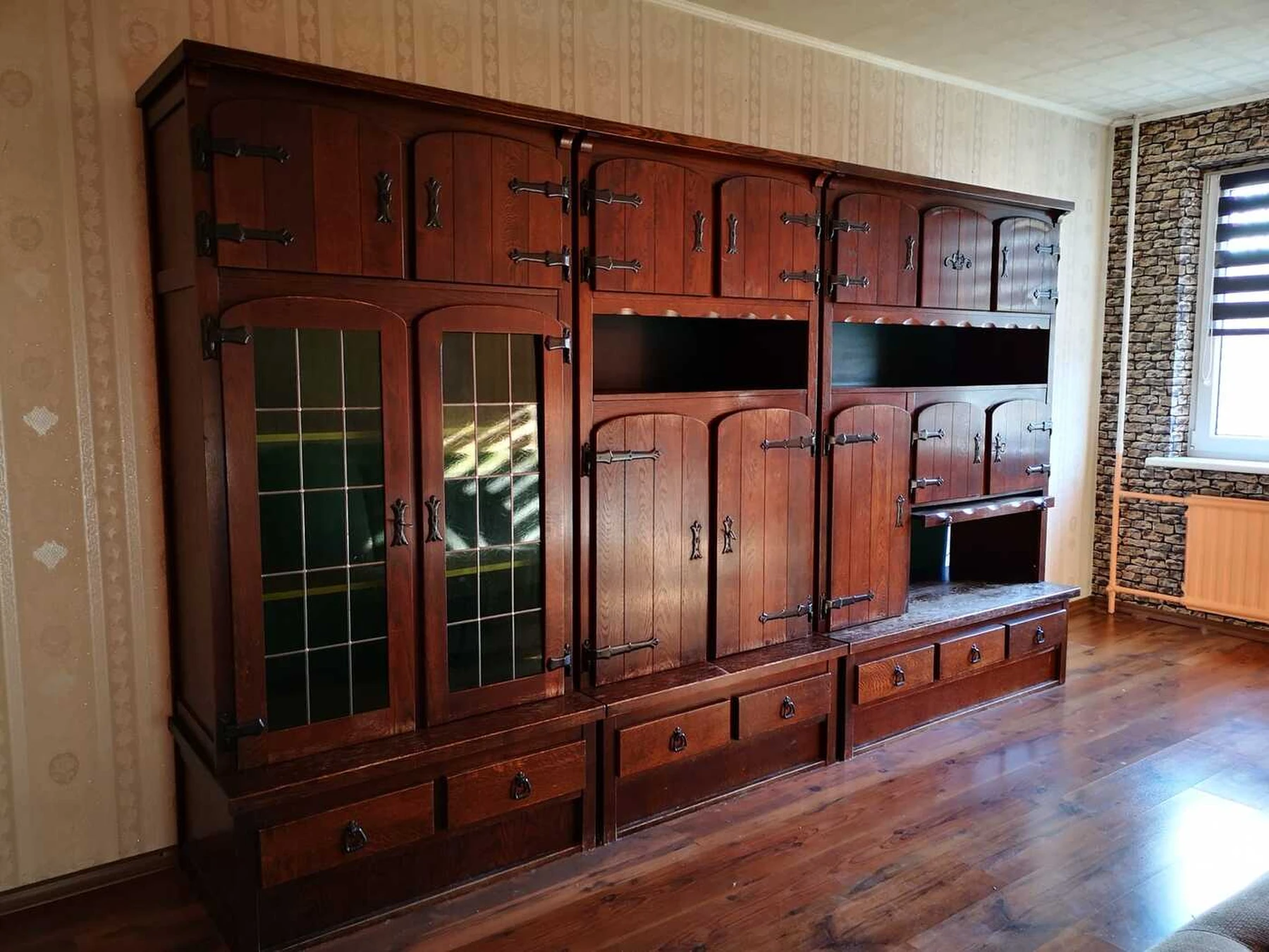 Parduodu ąžuoline, sekciją, su senovišku prieskoniu. Sekcija gali būti sujungta, kaip parodyta nuotraukose, gali būti išdalinta i 3 dalis, kaip atskiri vienetai. Yra baras, prie jo atsitraukia stalelis. Sekcijos viduje yra šviesa, šaldytuvo apšvietimo principu, kai atsidaro durelės, dega šviesa, uždarius, nedega. Sekcija yra Klaipėdoj, reikėtų pasiimti patiems.