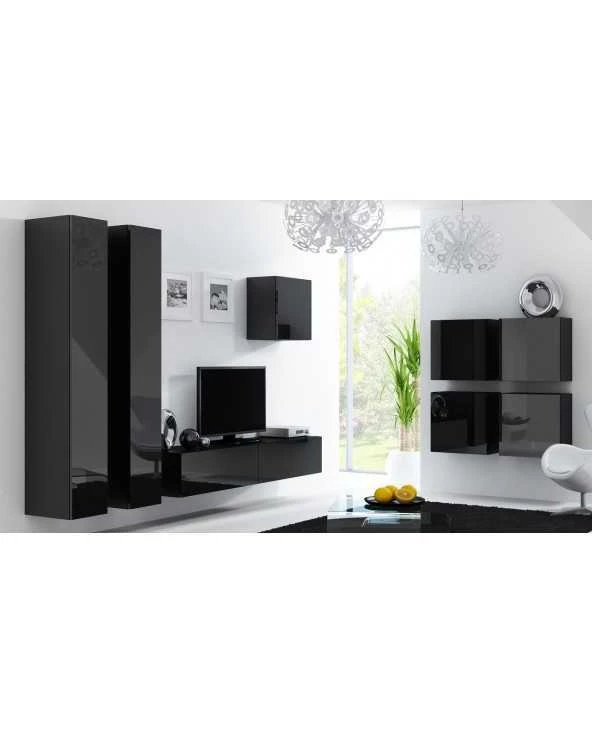 | Interjeras | Kvadratinė spintelė - priekyje atidaroma į šoną, viduje yra viena lentyna TV spintelė - viduje du skyriai Vertikali vitrina - 4 lentynos viduje |