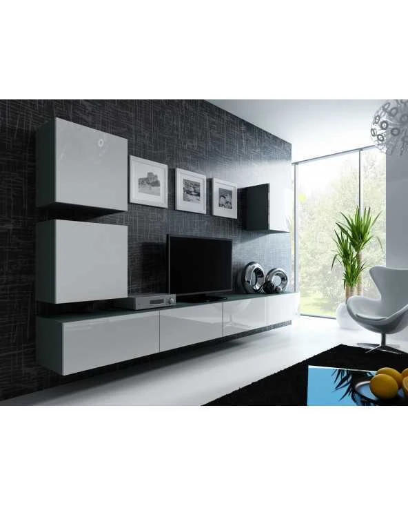 | Interjeras | Kvadratinė spintelė - priekyje atidaroma į šoną, viena lentyna viduje / TV spintelė - du skyriai viduje |