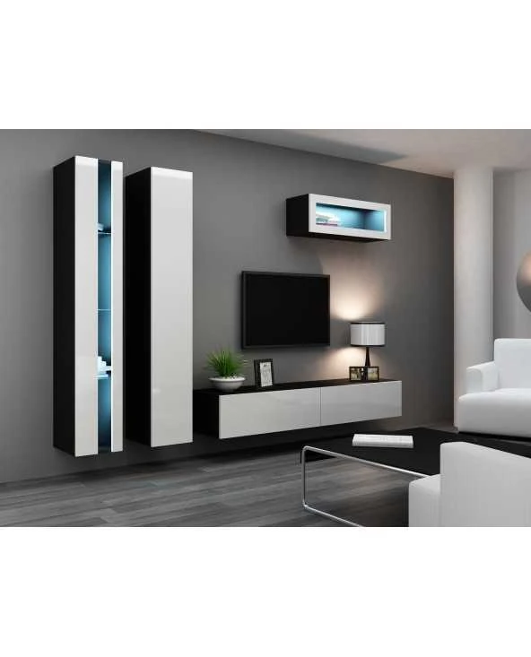 | Interjeras | TV spintelė - viduje du skyriai Vertikali vitrina - 4 lentynos viduje Atvira spintelė - atvira priekinė dalis be stiklo, 3 stiklinės lentynos viduje |