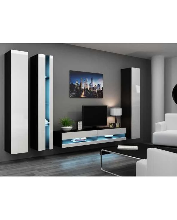 | Interjeras | TV spintelė - viduje du skyriai Vertikali vitrina - 4 lentynos viduje Atvira vitrina - atvira priekinė dalis be stiklo, 3 stiklinės lentynos viduje |