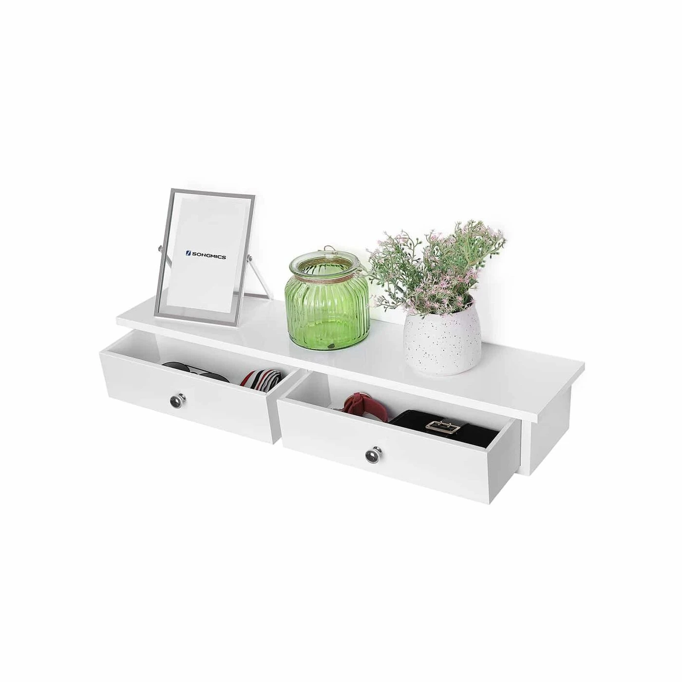 Aprašymas buvo automatiškai išverstas, gali pasitaikyti klaidų.Trūksta sandėliavimo vietos ant grindų? Nukreipkite dėmesį į savo sienas! Naudodami šią plaukiojančią lentyną galite išdėlioti paveikslų rėmus miegamajame, laikyti prieskonių stiklainius virtuvėje arba sudėti dekoratyvinius daiktus svetainėje. Esame stiprūs. Nestabilias lentynas palikite į šalį! Pagaminta iš E1 klasės medžio, ši plaukiojanti lentyna su dviem stalčiais yra pakankamai tvirta, kad tilptų vazoninius augalus arba namų aksesuarus (maksimali statinė apkrova: 12 kg).Informacija apie gaminį: - Spalva: balta - Medžiaga: E1 klasės MDF (vidutinio tankio medienos plaušų plokštė) - Dydis: 65 x 15 x 10 cm (P x P x A) - Bendras svoris: 3,2 kg - Maksimali statinė apkrova: 12 kg pristatymo metu: - 1 x sieninė lentyna su 2 stalčiais - 1 x priedų krepšys SONGMICS Pastabos: - Šiai lentynai surinkti reikalingas atsuktuvas, gulsčiukas ir plaktukas. - Montuokite gaminį ant tvirtų betoninių arba plytų sienų. Jei norite montuoti gaminį ant gipso kartono, turite įsigyti atitinkamus varžtus iš specializuoto pardavėjo.