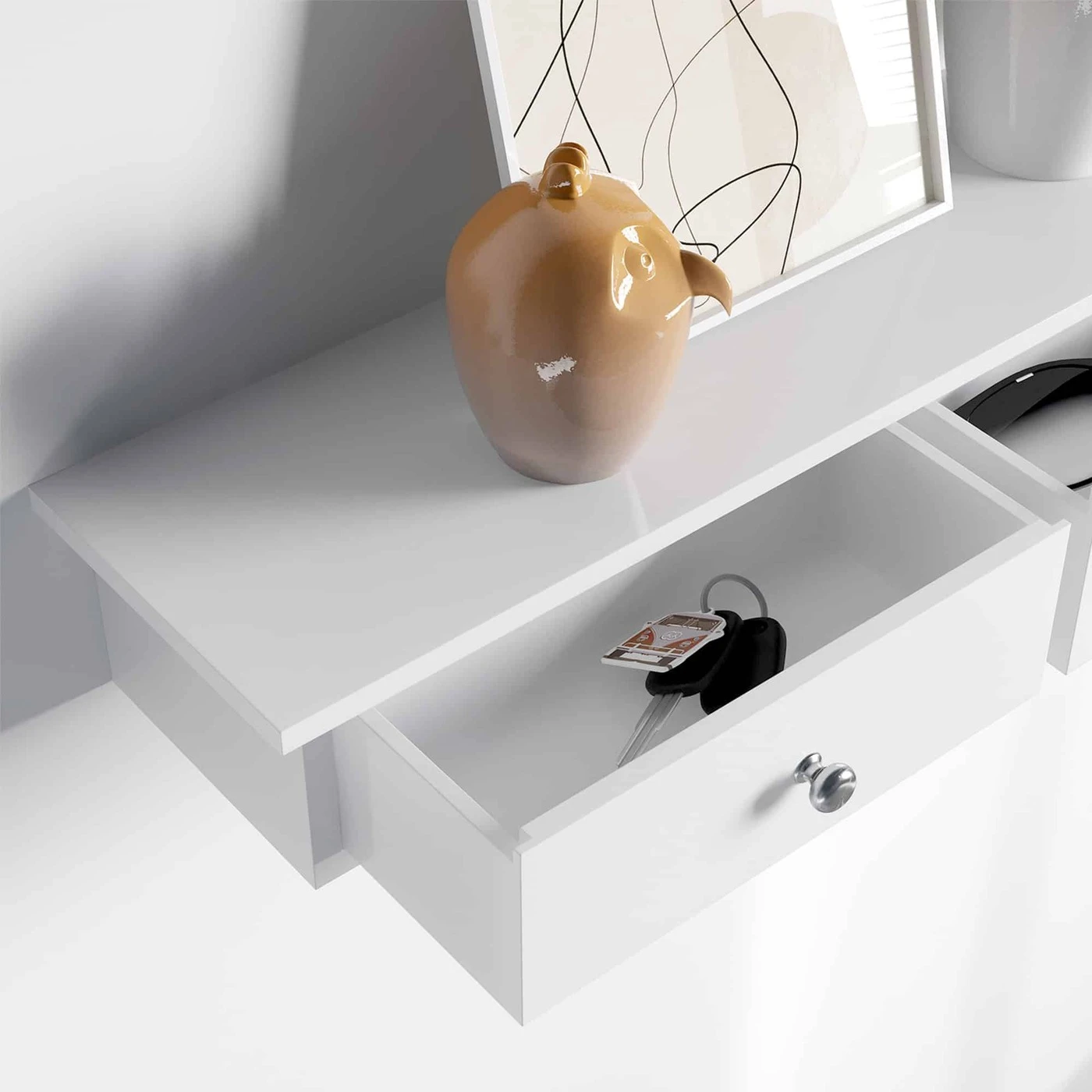 Aprašymas buvo automatiškai išverstas, gali pasitaikyti klaidų. Trūksta sandėliavimo vietos ant grindų? Nukreipkite dėmesį į savo sienas! Su šia slankiojančia lentyna galite išdėlioti paveikslų rėmus miegamajame, laikyti prieskonių stiklainius virtuvėje ar sudėti dekoratyvinius daiktus svetainėje. „Mes stiprūs“: nustumkite nestabilias lentynas! Pagaminta iš E1 klasės inžinerinės medienos, ši 3 stalčių plaukiojanti lentyna yra pakankamai tvirta, kad tilptų vazoninius augalus arba namų aksesuarus (maksimali statinė apkrova: 15 kg).Informacija apie gaminį: - Spalva: balta - Medžiaga: E1 klasės MDF (vidutinio tankio medienos plaušų plokštė) - Dydis: 80 x 15 x 10 cm (P x P x A) - Svoris: 4 kg - Maksimali statinė apkrova: 15 kg pristatymas: - 1 x sieninė lentyna su 3 stalčiais - 1 x priedų pakuotė - 1 x instrukcijos (DE,EN,FR,ES,IT) SONGMICS Pastabos:- Šiai lentynai surinkti reikia atsuktuvo, gulsčiuko ir plaktuko.- Prašome surinkite gaminio tvirtas betonines arba plytų sienas. Jei norite montuoti gaminį ant gipso kartono, turite įsigyti atitinkamus varžtus iš specializuoto pardavėjo.