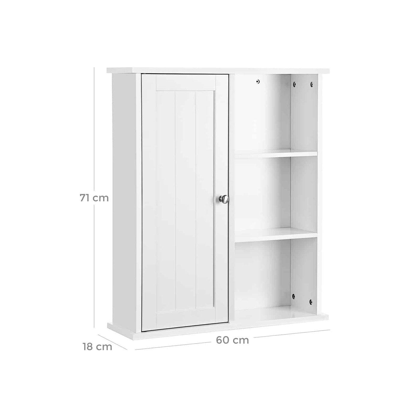Aprašymas buvo automatiškai išverstas, gali pasitaikyti klaidų.Ar vis dar erzinate, kad vonios kambaryje niekada neužtenka vietos makiažui ir makiažo reikmenims? Su sienine spintele VASAGLE galite optimaliai išnaudoti patalpos aukštį ir sukurti papildomos vietos daiktams laikyti. Vonioje lengvai susidėsite visus kasdienius daiktus, tai tikras buto vietos taupymas.Aukštos kokybės MDF plokštės užtikrina puikų stabilumą ir ilgą tarnavimo laiką net ir drėgnoje patalpoje. Paviršius, padengtas baltais dažais, yra lengvai valomas, todėl bus lengviau atlikti namų ruošos darbus. Šiuolaikiška ir elegantiška išvaizda ši spinta atkreipia visų dėmesį VASAGLE yra įsipareigojusi tiekti aukštos kokybės baldus, kad sukurtų patogią ir jaukią atmosferą jūsų namuose. Gyvenkite atsipalaidavę su VASAGLE!Informacija apie gaminį: - Spalva: balta - Medžiaga: MDF plokštė - Matmenys: 60 x 71 x 18 cm (P x A x G) - Kairiojo skyriaus matmenys: 26 x 68 x 15 cm (P x A x G) - Matmenys kiekvieno dešiniojo skyriaus: 26 x 21,8 x 15 cm (P x A x G) - atstumas tarp dviejų tvirtinimo angų gale: 33,5 cm - neto svoris: 9,52 kg - bruto svoris: 10,5 kg Pristatymo komplektas: - 1 x sieninė spintelė - 1 x instrukcijos (DE, EN, IT, FR, ES) - 1 x priedų krepšys Pastaba: - Priklausomai nuo sienos pobūdžio, jums reikės skirtingų kaiščių ir varžtų, pavyzdžiui, kitokių gipso kartono sienoms nei plytų siena. Daugiau informacijos teiraukitės techninės įrangos parduotuvės specialistų.