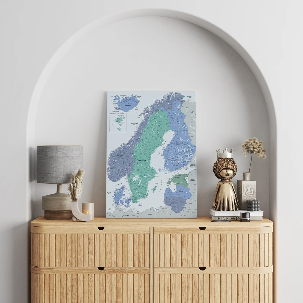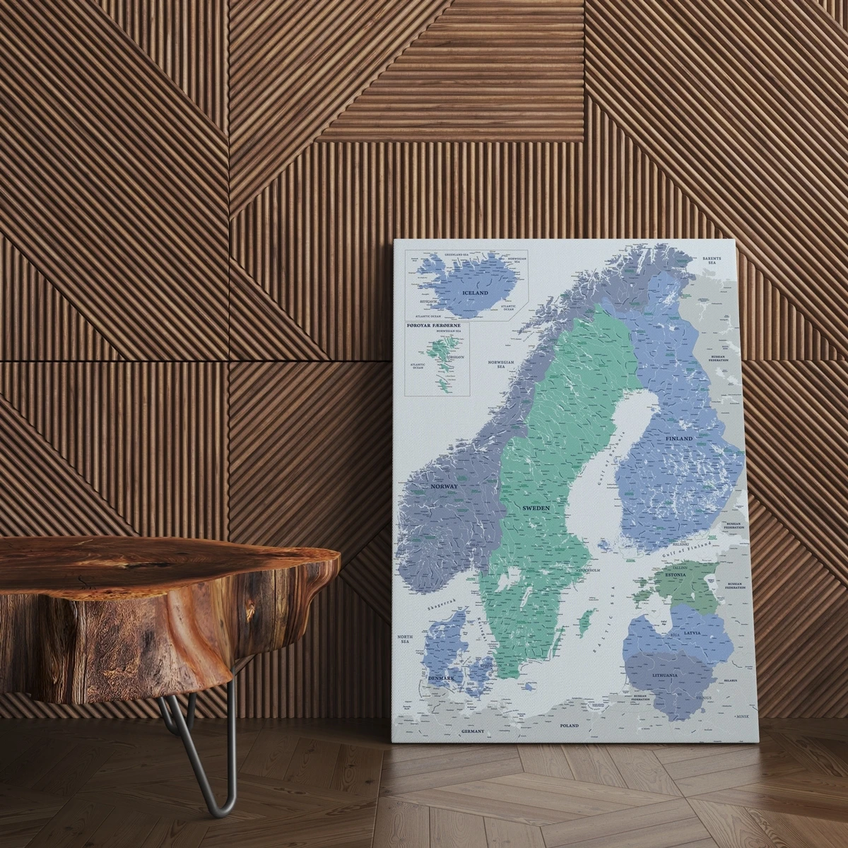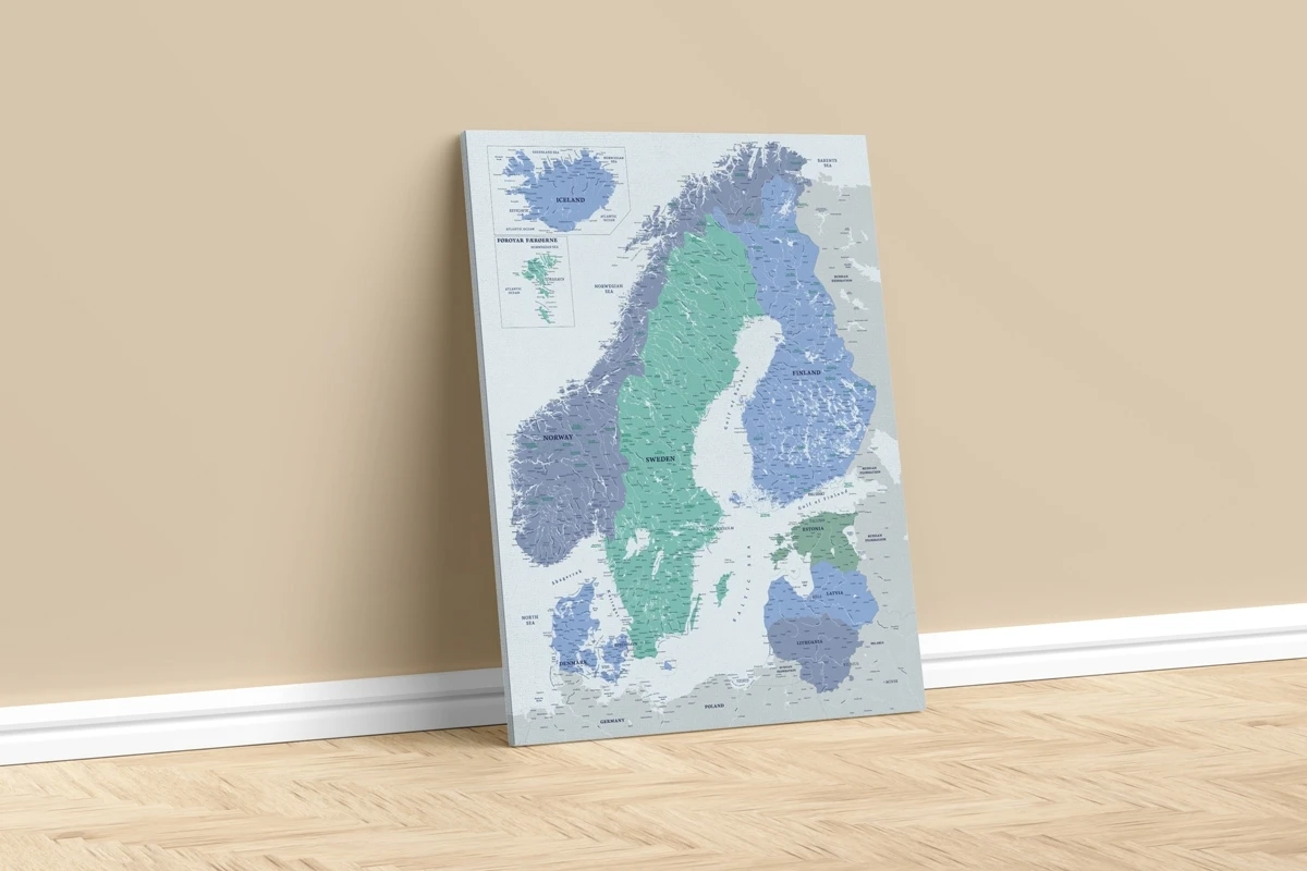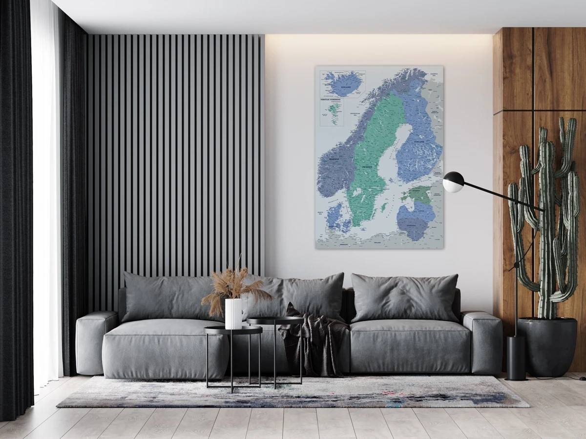 XL 150×100 cm – 199 € L 120×80 cm – 159 € M 100×70 cm – 119 € S 85×60 cm – 99 € MEDŽIAGOS Žemėlapis išliks ryškus ir puikios išvaizdos daugybę metų, nes jam pagaminti naudojamos aukščiausios kokybės medžiagos. Išspausdintas vaizdas yra padengiamas vandens pagrindo rūgščių neturinčiu apsauginiu laku, kuris atitinka muziejuose saugomų eksponatų reikalavimus - iki 80-100 metų spalvos išlieka nepakitusios. Kiekvienas žemėlapis yra kruopščiai pagamintas Lietuvoje profesionalių MyPoint meistrų. Smulkios tekstūros ir tvirta 310g/m² drobė Coala,Aukštos raiškos Mutoh spausdintuvas, užtikrinantis aiškų skaitomumą (Japonija),Originalūs ir ilgaamžiai dažai, suteikiantys ryškias spalvas (Japonija),Nuo blukimo ir neigiamo aplinkos poveikio apsaugantis matinis spaudos lakas (Jungtinė Karalystė);Tvirtas natūralaus medžio porėmis užpildytas su putų plokšte – lengvai konstrukcijai ir patogiam smeigtukų naudojimui (Lietuva).