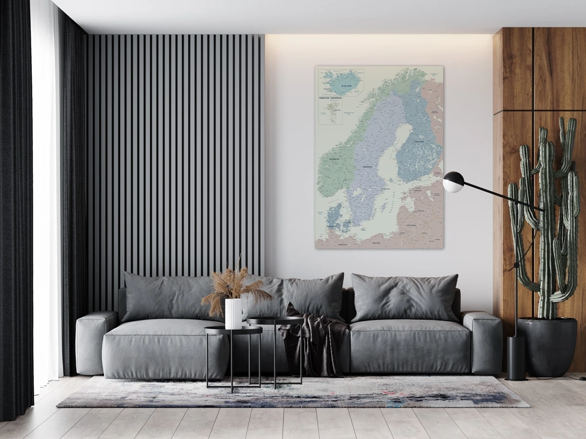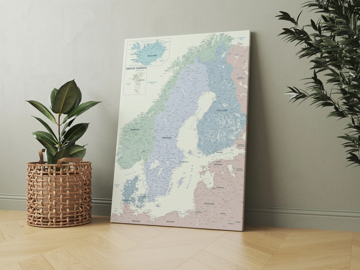 XL 150×100 cm – 199 € L 120×80 cm – 159 € M 100×70 cm – 119 € S 85×60 cm – 99 € MEDŽIAGOS Žemėlapis išliks ryškus ir puikios išvaizdos daugybę metų, nes jam pagaminti naudojamos aukščiausios kokybės medžiagos. Išspausdintas vaizdas yra padengiamas vandens pagrindo rūgščių neturinčiu apsauginiu laku, kuris atitinka muziejuose saugomų eksponatų reikalavimus - iki 80-100 metų spalvos išlieka nepakitusios. Kiekvienas žemėlapis yra kruopščiai pagamintas Lietuvoje profesionalių MyPoint meistrų. Smulkios tekstūros ir tvirta 310g/m² drobė Coala,Aukštos raiškos Mutoh spausdintuvas, užtikrinantis aiškų skaitomumą (Japonija),Originalūs ir ilgaamžiai dažai, suteikiantys ryškias spalvas (Japonija),Nuo blukimo ir neigiamo aplinkos poveikio apsaugantis matinis spaudos lakas (Jungtinė Karalystė);Tvirtas natūralaus medžio porėmis užpildytas su putų plokšte – lengvai konstrukcijai ir patogiam smeigtukų naudojimui (Lietuva).
