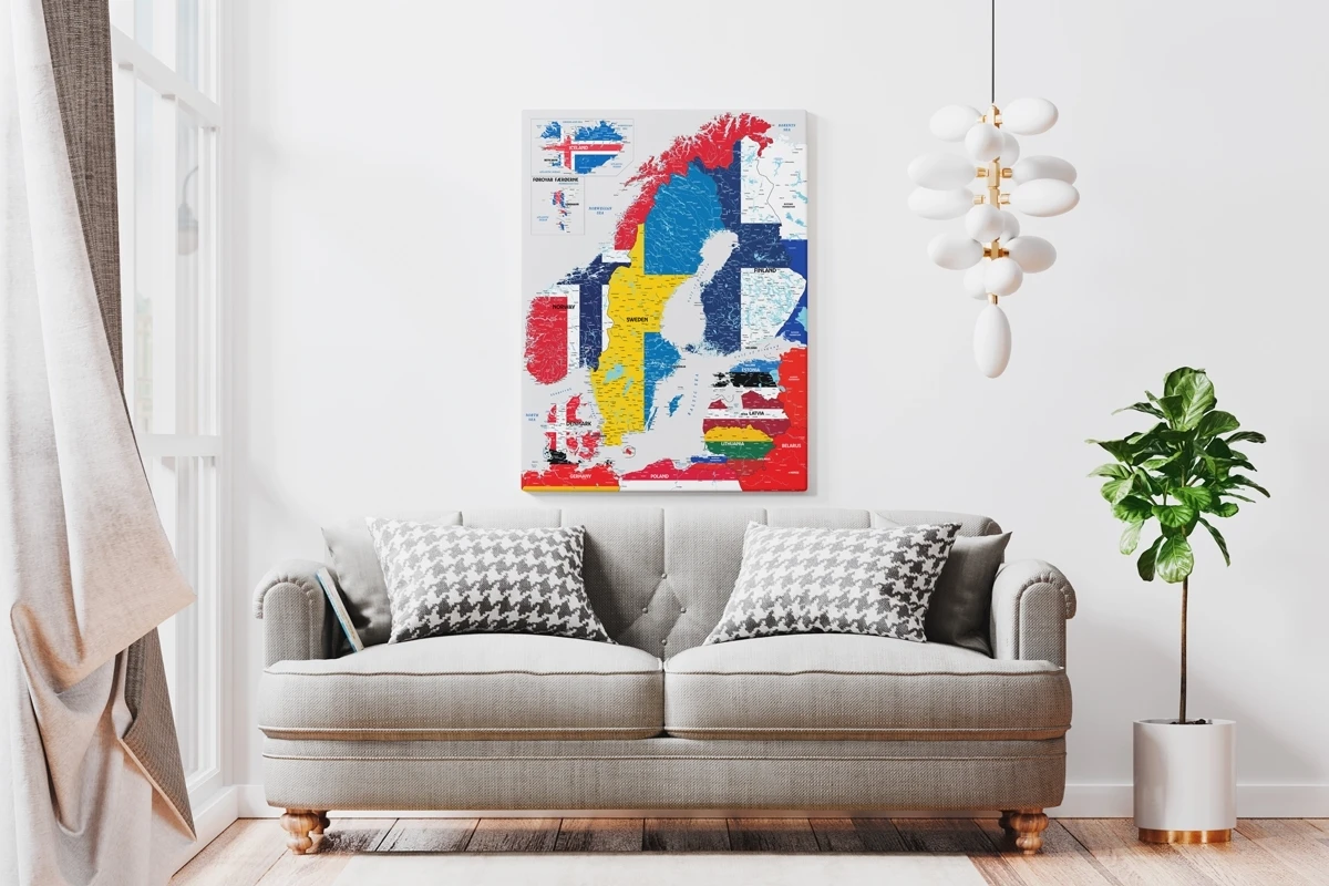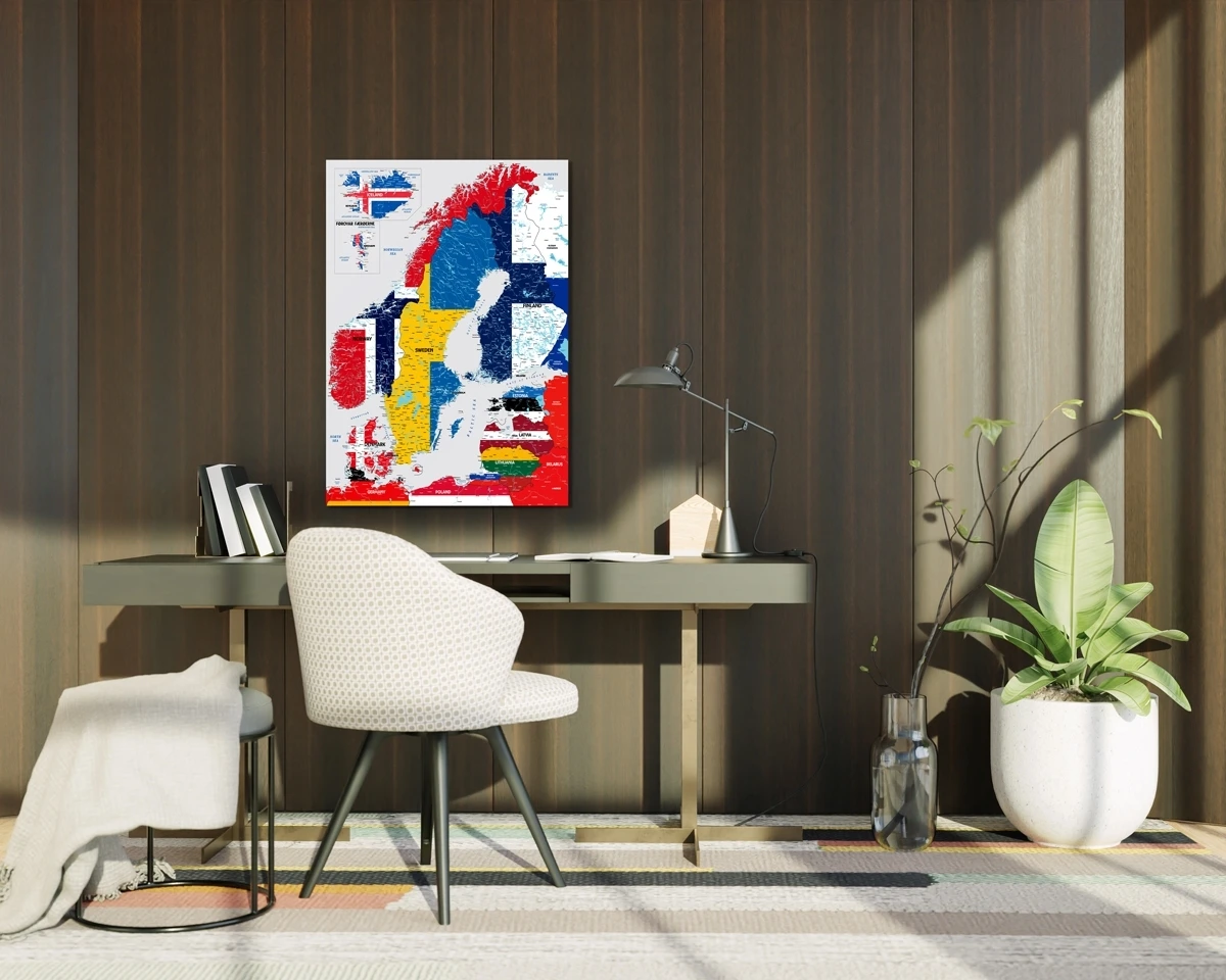 XL 150×100 cm – 199 € L 120×80 cm – 159 € M 100×70 cm – 119 € S 85×60 cm – 99 € MEDŽIAGOS Žemėlapis išliks ryškus ir puikios išvaizdos daugybę metų, nes jam pagaminti naudojamos aukščiausios kokybės medžiagos. Išspausdintas vaizdas yra padengiamas vandens pagrindo rūgščių neturinčiu apsauginiu laku, kuris atitinka muziejuose saugomų eksponatų reikalavimus - iki 80-100 metų spalvos išlieka nepakitusios. Kiekvienas žemėlapis yra kruopščiai pagamintas Lietuvoje profesionalių MyPoint meistrų. Smulkios tekstūros ir tvirta 310g/m² drobė Coala,Aukštos raiškos Mutoh spausdintuvas, užtikrinantis aiškų skaitomumą (Japonija),Originalūs ir ilgaamžiai dažai, suteikiantys ryškias spalvas (Japonija),Nuo blukimo ir neigiamo aplinkos poveikio apsaugantis matinis spaudos lakas (Jungtinė Karalystė);Tvirtas natūralaus medžio porėmis užpildytas su putų plokšte – lengvai konstrukcijai ir patogiam smeigtukų naudojimui (Lietuva).