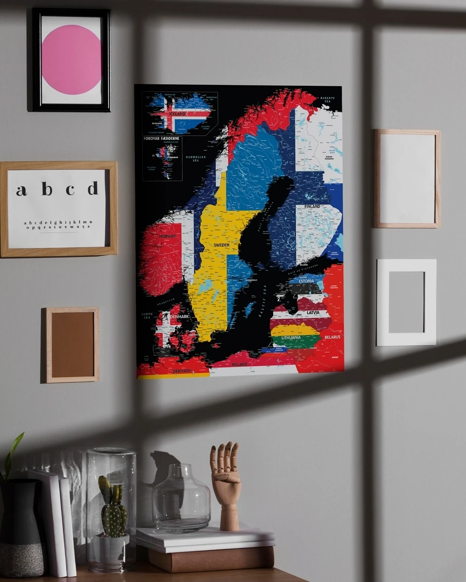 XL 150×100 cm – 199 € L 120×80 cm – 159 € M 100×70 cm – 119 € S 85×60 cm – 99 € MEDŽIAGOS Žemėlapis išliks ryškus ir puikios išvaizdos daugybę metų, nes jam pagaminti naudojamos aukščiausios kokybės medžiagos. Išspausdintas vaizdas yra padengiamas vandens pagrindo rūgščių neturinčiu apsauginiu laku, kuris atitinka muziejuose saugomų eksponatų reikalavimus - iki 80-100 metų spalvos išlieka nepakitusios. Kiekvienas žemėlapis yra kruopščiai pagamintas Lietuvoje profesionalių MyPoint meistrų. Smulkios tekstūros ir tvirta 310g/m² drobė Coala,Aukštos raiškos Mutoh spausdintuvas, užtikrinantis aiškų skaitomumą (Japonija),Originalūs ir ilgaamžiai dažai, suteikiantys ryškias spalvas (Japonija),Nuo blukimo ir neigiamo aplinkos poveikio apsaugantis matinis spaudos lakas (Jungtinė Karalystė);Tvirtas natūralaus medžio porėmis užpildytas su putų plokšte – lengvai konstrukcijai ir patogiam smeigtukų naudojimui (Lietuva).