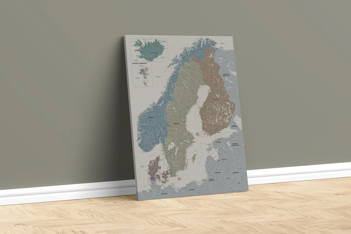 XL 150×100 cm – 199 € L 120×80 cm – 159 € M 100×700 cm – 119 € S 85×60 cm – 99 € MEDŽIAGOS Žemėlapis išliks ryškus ir puikios išvaizdos daugybę metų, nes jam pagaminti naudojamos aukščiausios kokybės medžiagos. Išspausdintas vaizdas yra padengiamas vandens pagrindo rūgščių neturinčiu apsauginiu laku, kuris atitinka muziejuose saugomų eksponatų reikalavimus - iki 80-100 metų spalvos išlieka nepakitusios. Kiekvienas žemėlapis yra kruopščiai pagamintas Lietuvoje profesionalių MyPoint meistrų. Smulkios tekstūros ir tvirta 310g/m² drobė Coala,Aukštos raiškos Mutoh spausdintuvas, užtikrinantis aiškų skaitomumą (Japonija),Originalūs ir ilgaamžiai dažai, suteikiantys ryškias spalvas (Japonija),Nuo blukimo ir neigiamo aplinkos poveikio apsaugantis matinis spaudos lakas (Jungtinė Karalystė);Tvirtas natūralaus medžio porėmis užpildytas su putų plokšte – lengvai konstrukcijai ir patogiam smeigtukų naudojimui (Lietuva).