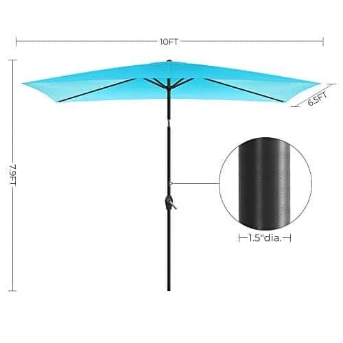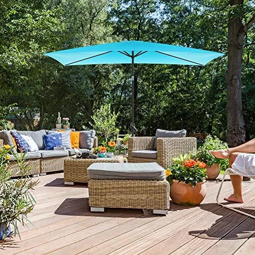 Aprašymas buvo automatiškai išverstas, gali pasitaikyti klaidų.Vasara, saulė, linksmybės: išeik į lauką! Šis skėčiais ne tik atrodo šiuolaikiškai, bet ir 3 x 2 m matmenų suteikia pakankamai pavėsio lauke. Pakvieskite draugus ir mėgaukitės vėsiais gėrimais gryname ore po skėčiu – nebijokite ryškių saulės spindulių!Pagrindinės priežastys, kodėl šis skėtis jums tinka: Puiki apsauga nuo saulės: Skėtis užtikrina optimalią UV apsaugą (UPF 50+). ) ir blokuoja 98 % UV spindulių Tvirtas sulankstymo mechanizmas: sulankstymo mechanizmas pagamintas iš cinko lydinio ir garantuoja ilgą tarnavimo laiką Lengvas atidarymas ir uždarymas: Dėl praktiško rankinio švaistiklio skėtis lengvai atidaromas ir uždaromas.Didelis stabilumas: stačiakampės briaunos suteikia balkono skėtis papildomas stabilumasPrekės informacija: Spalva: turkio mėlyna Medžiaga: Skėčio stulpas pagamintas iš metalo, skėčio audinys iš 180 g/m² poliesterio Skėčio audinio dydis: 3 x 2 m (P x P) Aukštis: 2,4 m Svoris: 6,2 kg Pristatymo apimtis: 1 x skėtis 1 x instrukcija DAINAMIKA Pastabos: Skėčio stovas neįeina.Skėčio neatidarykite jėga, bet švelniai ir lėtai.Uždarykite skėtį nakčiai, pučiant stipriam vėjui ar lietingu oru, kad nepažeistumėte.Saugokite skėtį dangtelis (nepridedamas), užtikrinantis ilgesnį tarnavimo laiką.