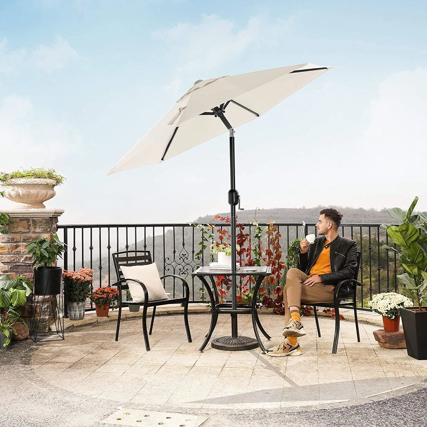 Aprašymas buvo automatiškai išverstas, gali pasitaikyti klaidų.Šilta saulė, mėlynas dangus, grynas oras, nuostabi gamta... Ko lauki? Laikas atsipalaiduoti balkone! Bijote stiprių saulės spindulių? Nesijaudink. Tiesiog atidarykite šį skėtį iš SONGMICS ir mėgaukitės nuostabiu oru pavėsyje! Tai yra šio skėčio akcentai: 180 g/m² poliesterio audinio skėčiai puikiai apsaugo nuo UV spindulių Aukštos kokybės metalinis sulankstymo mechanizmas žada ilgą tarnavimo laiką. Tvirtas metalinis skėčio stulpas užtikrina gerą stabilumą ir suteikia jūsų balkonui šiuolaikiškumo. 6 stačiakampės skėčio briaunos suteikia skėčiui tvirtą laikymą. Skėtį galima lengvai atidaryti ir uždaryti naudojant praktišką alkūninį stabilumą net pučiant silpnam vėjuiIšsami informacija apie gaminį: Spalva: smėlio spalvos Medžiaga: metalinis skėčio stulpas, 180 g/m² poliesterio audinys Ø skėtis: 2 m Aukštis: 2,3 m Svoris: 3,5 kg Pristatymo komplektas: 1 x skėtis 1 x instrukcijos SONGMICS Pastabos: Skėčio stovas į komplektaciją neįeina . Neatidarykite skėčio Naudokite jėgą, bet švelniai ir lėtai. Uždarykite skėtį naktį, pučiant stipriam vėjui ar lietingu oru, kad nepažeistumėte. Apsaugokite skėtį uždangalu (nepridedama), kad užtikrintumėte ilgesnį tarnavimo laiką.