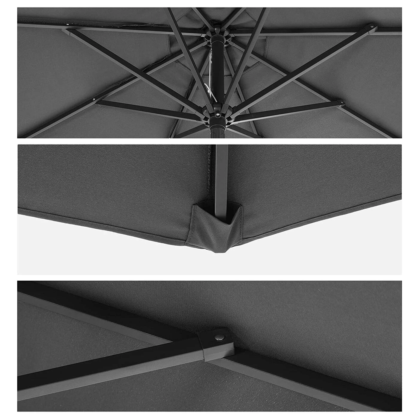 Aprašymas buvo automatiškai išverstas, gali pasitaikyti klaidų.Mėgaukitės gražiu oru pavėsyje! Lauko sezonas prasidėjo ir metas keliauti į sodą, terasą ar paplūdimį! Bet saugokis! Pagalvokite apie tinkamą apsaugą nuo saulės! Kai po ilgų, šaltų žiemos dienų pagaliau susigrąžinate savo lauko erdvę ir pasikviečiate draugus ant grotelių, atėjo puiki akimirka pasinaudoti naujuoju SONGMICS skėčiu! Vasarą būtina turėti Šį skėtį galima lenkti į kairę ir į dešinę. Taigi galite pritaikyti jį prie paros laiko ir šviesos kritimo kampo. Pavėsio skersmuo 270 cm, aukštis 240 cm. Po apsauga nuo saulės yra vietos nuo 4 iki 6 žmonių. Skėčio stiebas taip pat pagamintas iš nerūdijančio plieno. Tvirtas ir patvarus apsauginis audinys Apsauginis audinys nuo UV spindulių (UPF 50+) sudarytas iš 100 % poliesterio, yra atsparus vandeniui ir atsparus spalvoms. Be to, jame yra keletas ventiliacijos angų. Tai leidžia sodo skėtis geriau atlaikyti vėją. Be to, apsauginė šluostė yra nuimama ir gali būti skalbiama rankomis.Išsami informacija apie gaminį: - Spalva: pilka - Medžiaga: skėčio stulpas ir skėčio briaunelės iš metalo, 180 g/㎡ poliesterio audinys - Aukštis: 240 cm - Ø skėtis: 270 cm - Ø skėčio kotas: 38 mm - Svoris: 6 kg pristatymas: - 1 x skėtis - 1 x Instrukcija (DE, EN, FR, ES, IT) SONGMICS Pastabos: - Skėčio stovas neįeina.- Uždarykite skėtį naktį ir pučiant stipriam vėjui.- Nerekomenduojama naudoti šis skėtis lietingu oru.