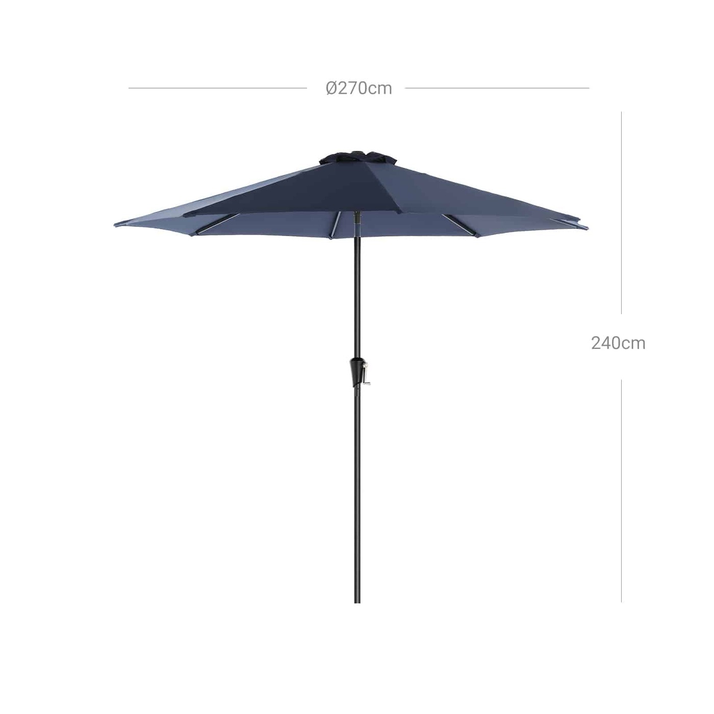 Aprašymas buvo automatiškai išverstas, gali pasitaikyti klaidų.Šilta saulė, mėlynas dangus, grynas oras, nuostabi gamta... Ko lauki? Laikas atsipalaiduoti balkone! Bijote stiprių saulės spindulių? Nesijaudink. Tiesiog atidarykite šį SONGMICS skėtį ir mėgaukitės nuostabiu oru pavėsyje! Tai yra šio skėčio akcentai: skėčiai, pagaminti iš 180 g/m² poliesterio audinio, užtikrina puikią UV apsaugą iki UPF 50+ Aukštos kokybės cinko lydinio sulankstymo mechanizmas žada. ilgas tarnavimo laikas ;Metalinis skėčio stiebas yra tvirtas ir suteikia jūsų terasai ypatingą įspūdį. 8 stačiakampės skėčio briaunelės suteikia skėčiui tvirtą laikymą. Skėtį galima lengvai atidaryti ir uždaryti naudojant praktišką švaistiklį. Tereikia prisukti viršutinis skėčio stulpo stulpas su apatiniais stulpais, tada jis stovi Jūs turite skėtį.Išsami informacija apie gaminį: Spalva: tamsiai mėlyna Medžiaga: metalinis skėčio stulpas, 180 g/m² poliesterio audinys Ø skėčio skėtis: 2,7 m Aukštis: 2,4 m Svoris: 7 kg Pristatymo komplektas: 1 x skėtis 1 x instrukcija SONGMICS Pastabos: Padėkite sunkius daiktus (ne įeina) pėsčiomis, kad užtikrintumėte gaminio stabilumą. Prašome nenaudoti jėgos, kad atidarytumėte skėtį, o švelniai ir lėtai. Uždarykite skėtį nakčiai, pučiant stipriam vėjui ar lietingu oru, kad nepažeistumėte. Apsaugokite skėtį dangteliu (į komplektą neįeina), kad būtų užtikrintas ilgesnis tarnavimo laikas.