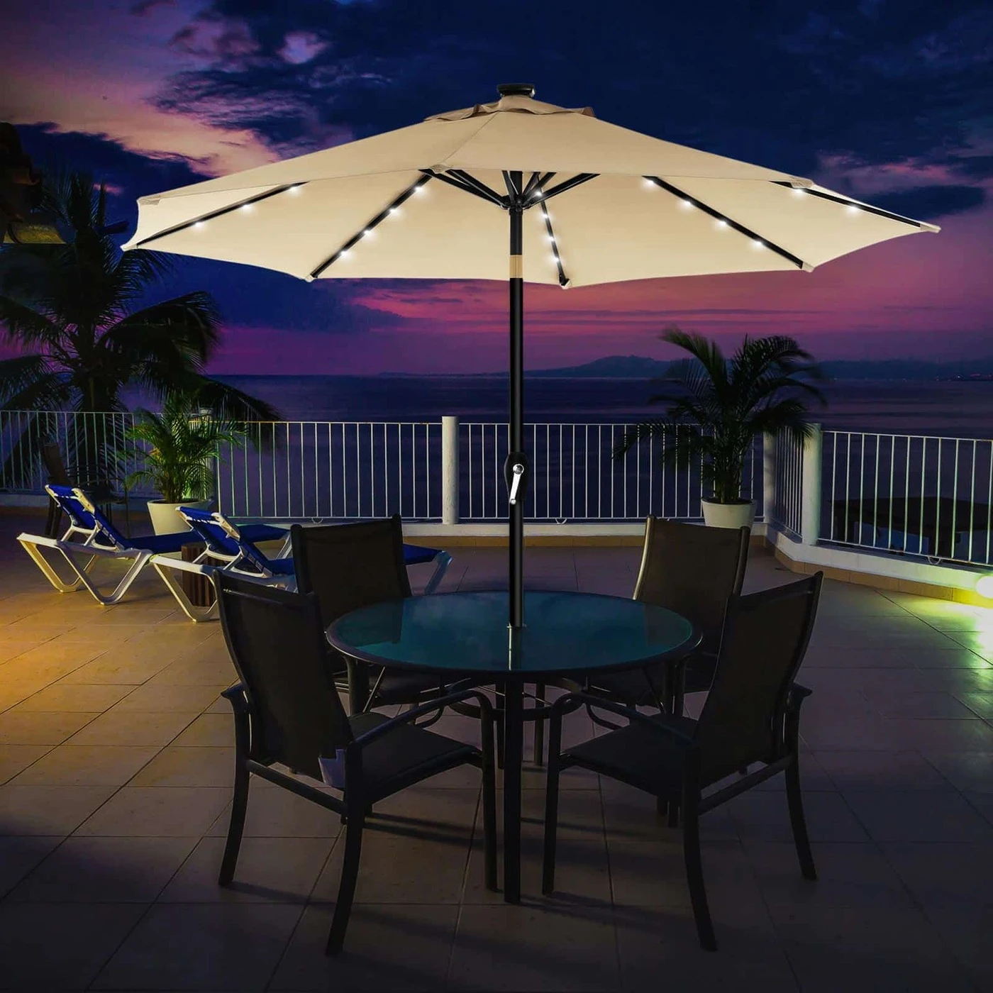 Aprašymas buvo automatiškai išverstas, gali pasitaikyti klaidų.Suteikia pavėsį dienos metu: nuo šiol nebereikia bijoti ryškios saulės šviesos! Nesvarbu, ar norite nusnūsti sode, pavalgyti su draugais terasoje ar pasimėgauti kavos pertraukėle su šeima po atviru dangumi – šis skėčiai išpildys jūsų planus. Pagaminta iš 180 g/m² poliesterio audinio, užtikrina puikią apsaugą nuo UV spindulių iki UPF 50+. Vakare spinduliuoja romantika: kai tik saulė nusileidžia, vakarėlis prasideda! Įjunkite LED lemputes, maitinamas saulės baterijos ir suteiksite savo balkonui romantiškos atmosferos. Vakarienė su savo partneriu? Gimtadienio staigmena vidurnaktį? Mėgaukitės gražiomis akimirkomis su savo artimaisiais švelnioje šviesoje!Dėžutės turinys: spalva: taupus medžiaga: metalinis skėčio stiebas, 180 g/m² poliesterio audinys Ø skėtis: 3 m svoris: 7,5 kg pristatymo apimtis: 1 x skėtis 1 x saulės baterija LED apšvietimui 1 x instrukcija SONGMICS pastabos: skėčio stovas yra neįeina.Skėčio atidarykite ne per jėgą, o švelniai ir lėtai.Vėjuotomis dienomis uždarykite skėtį, kad nepažeistumėte.
