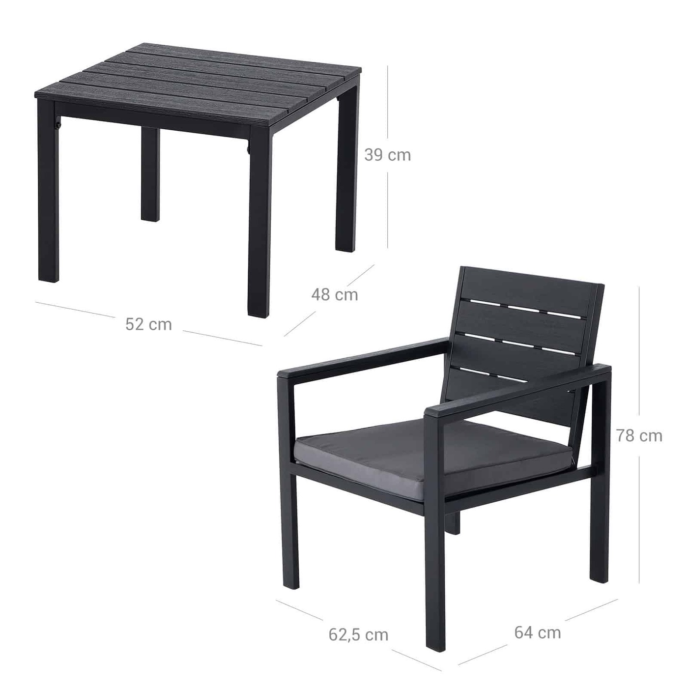 Aprašymas buvo automatiškai išverstas, gali pasitaikyti klaidų.Naudokite šį SONGMICS lauko baldų komplektą bet kurią gražią vasaros dieną ir stebėkite saulėlydį su savo antrąja puse! Ar yra gražesnis būdas užbaigti dieną? Jauskitės patogiai Atsisveikinkite su siauromis, nepatogiomis kėdėmis ir trapiais stalais! Šios sodo kėdės turi didelę sėdynę ir yra su patogiomis pagalvėlėmis. Visą komplektą taip pat palaiko tvirta konstrukcija, pagaminta iš milteliniu būdu dengtos geležies. Išvalykite, nuimkite, pakeiskite Pagalvėlės užvalkalas pagamintas iš vandeniui atsparaus poliesterio, kurį galima lengvai nuvalyti drėgna šluoste. Taip pat galite atidaryti dangtelį ir mesti jį į skalbimo mašiną arba pakeisti jį visiškai kitu audiniu.Prekės informacija: - Spalva: juoda - Medžiaga: rėmas pagamintas iš milteliniu būdu dengtos geležies, stalviršis, sėdynė ir atlošas iš HDPE plastiko, VFT apmušalai (Vertical Fiber Technology), užvalkalas pagamintas iš vandeniui atsparaus poliesterio audinio - Kėdės dydis: 62,5 x 64 x 78 cm ( P x P x A) - Stalo dydis: 52 x 48 x 39 cm (P x P x A) - Pagalvės dydis: 52 x 52 x 4 cm (P x P x A) - Svoris: 23,5 kg - Maks. statinė kėdės apkrova: 150 kg - Maksimalus statinės apkrovos stalas: 60 kg Pristatymo apimtis: - 2 x sodo kėdė - 1 x sodo stalas - 2 x pagalvėlės - 1 x priedų paketas - 1 x instrukcijos (DE, EN, IT) , FR, ES)SONGMICS pastabos: - Produktą vaikai turi naudoti prižiūrint suaugusiems, kad būtų išvengta galimų sužalojimų. - Laikykite gaminį toliau nuo šilumos šaltinių.