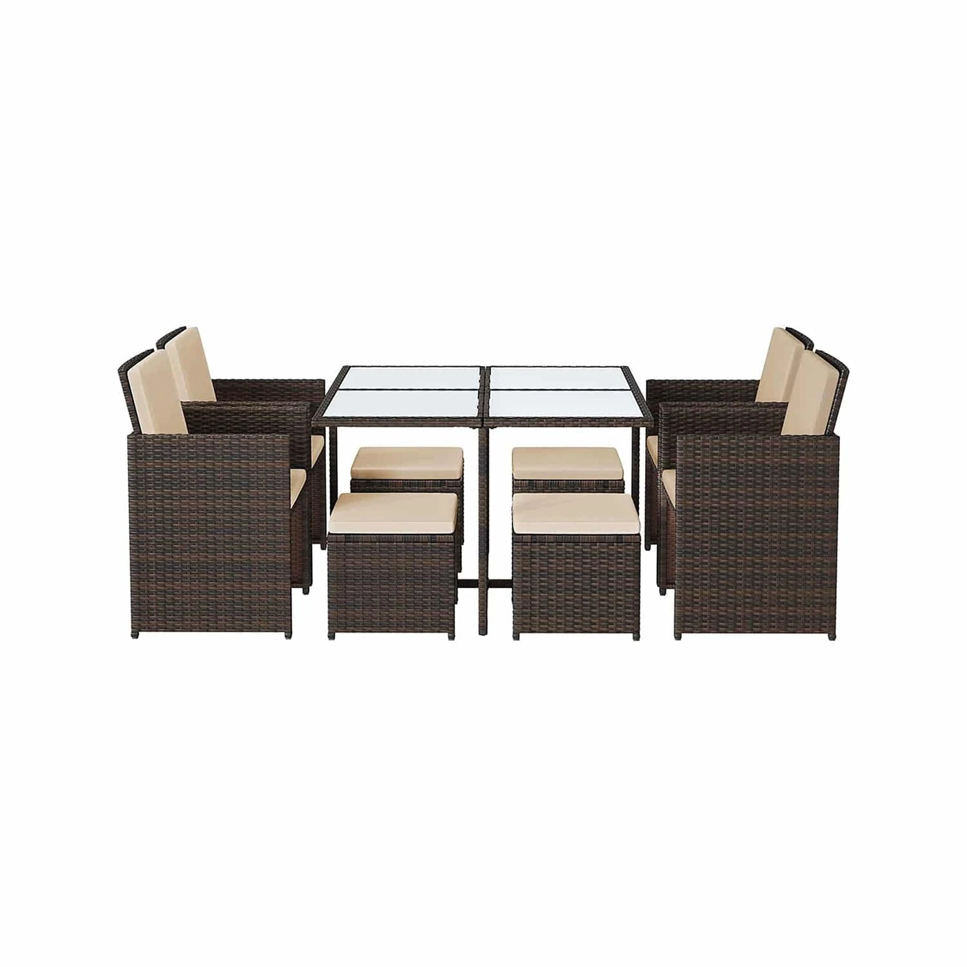Aprašymas buvo automatiškai išverstas, gali pasitaikyti klaidų.Gražus oras visus išvilioja į gryną orą. Ar norėtumėte mėgautis šilta saule savo sode? Pasilepinkite šiuo sodo baldų komplektu iš SONGMICS ir kokybiškai praleiskite laiką lauke su artimaisiais!Duokite daugiau, imkite mažiau: 9 dalių baldų komplektas užima tiek pat vietos, kiek stalas? Taip, tai įmanoma! Dėl sumanaus šio baldų komplekto dizaino taburetes galite pastumti po kėdėmis, o kėdes – po stalu. Tai reiškia, kad šiuos baldus galima sudėti, kad sutaupytumėte vietos, kai jie nenaudojami. Labai praktiška! Atsipalaidavimo oazė: sukurkite neformalią atmosferą su šiuo lauko sodo baldų komplektu. Kai oras šiltas, mėgaukitės maistu su savo antrąja puse sode, terasoje ar prie baseino. Šis gaivios ir natūralios išvaizdos kiemo baldų komplektas bus gražus akcentas daugelį metų!Prekės informacija: Spalva: rusvai smėlio spalvos Kėdės ir stalo medžiaga: PE polirotangas (polietilenas), milteliniu būdu dengtas plienas, grūdintas stiklas Pagalvėlių medžiaga: VFT paminkštinimas (Vertical Fiber Technology), užvalkalas pagamintas iš poliesterio audinio Kėdės dydis: 52 x 52 x 86 cm (I x P x A) Vienos taburetės dydis: 41 x 41 x 35 cm (P x P x A) Dydžių lentelė: 109 x 109 x 72 cm (P x P x A) Bendras svoris: 64 kg Maks. statinė vienos kėdės apkrova: 130 kgMaks. Statinė taburetės apkrova: 130 kg Maks. statinė stalo apkrova: 30 kg