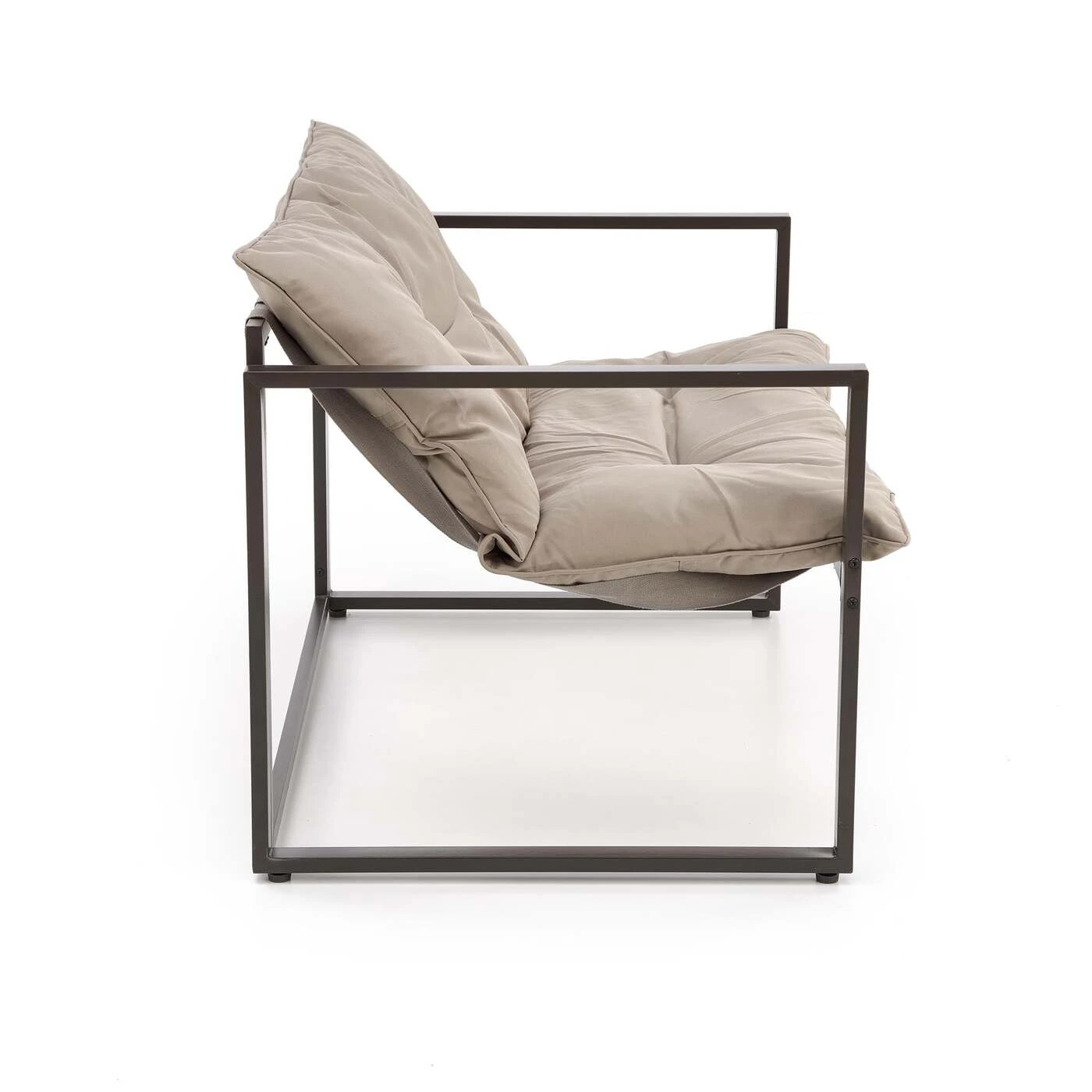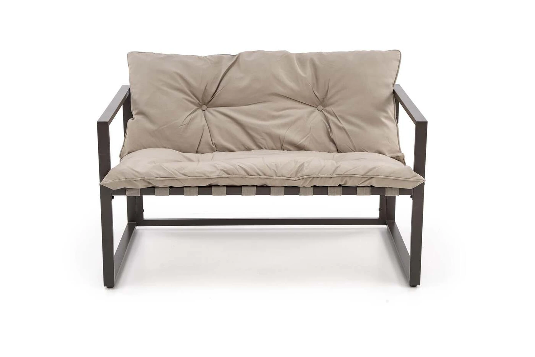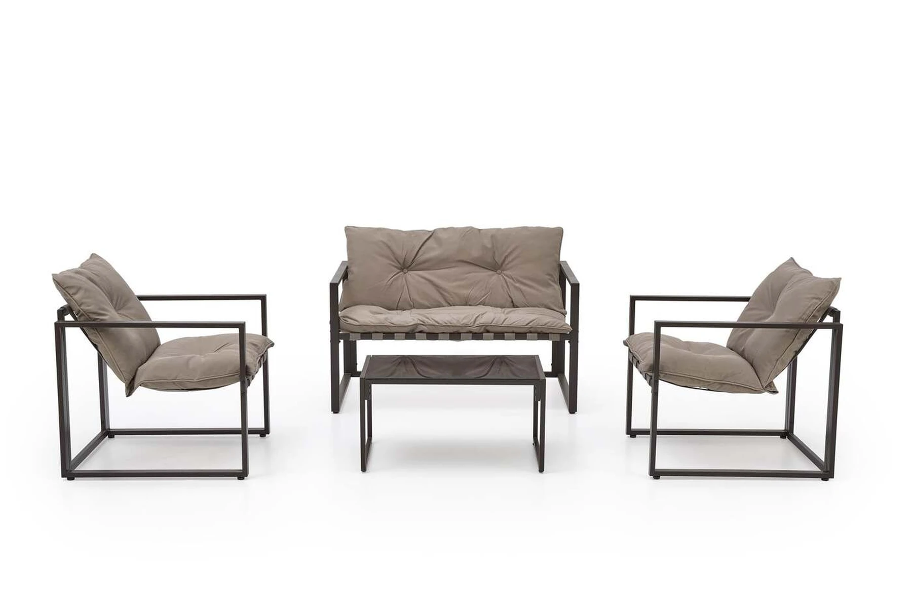 sodo komplektas ( sofa + kėdė 2x + c. stalas ), medžiaga: milteliniu būdu dažytas plienas / stiklas / audinys, spalva: juoda / kapučino