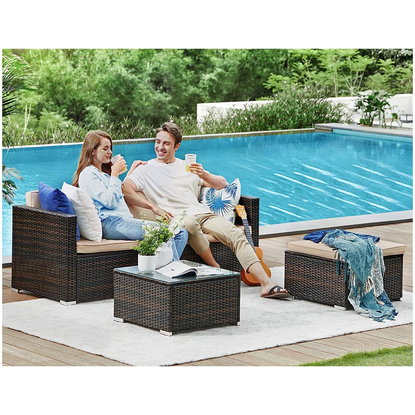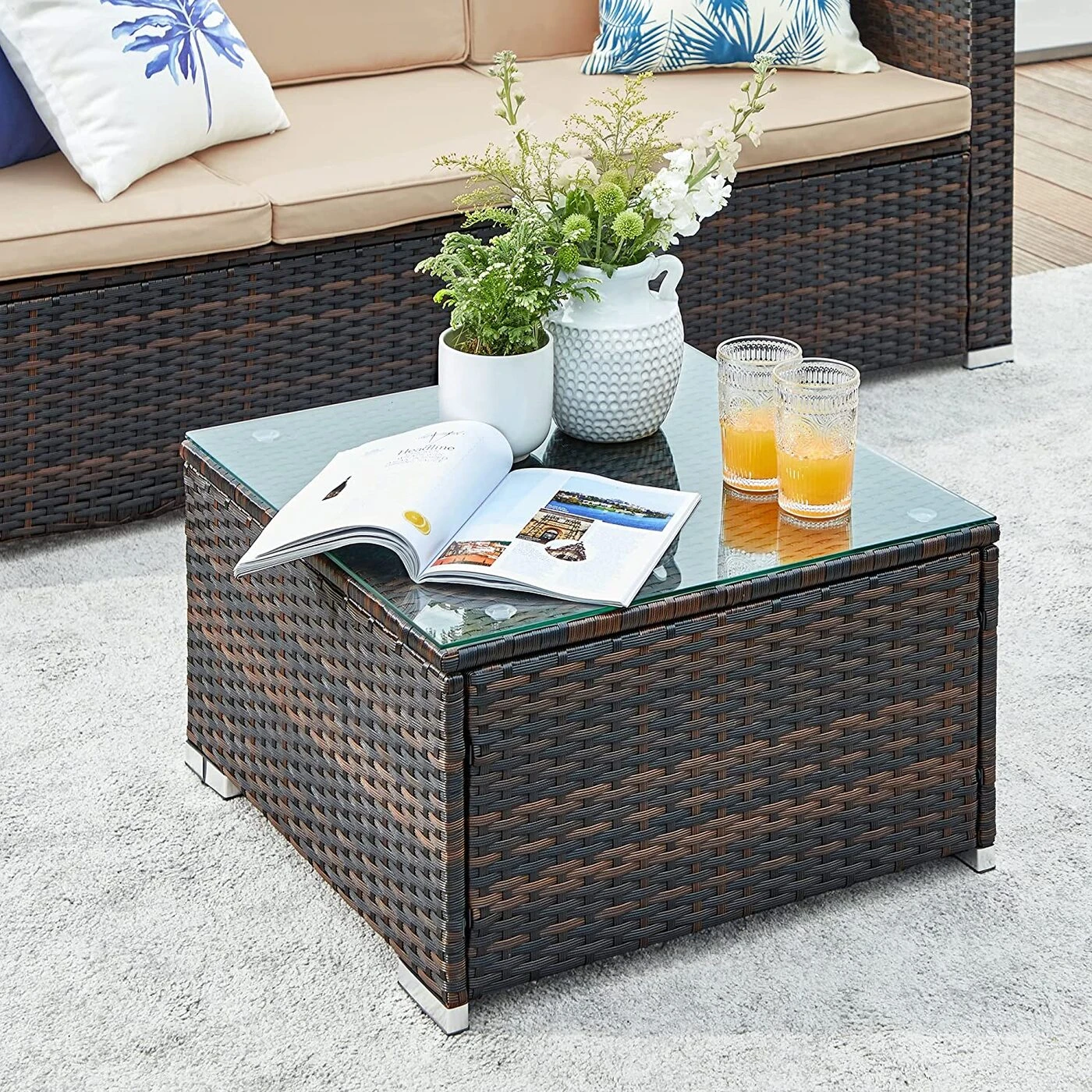 Aprašymas buvo automatiškai išverstas, gali pasitaikyti klaidų.Gražus oras visus išvilioja į gryną orą. Ar norėtumėte mėgautis šilta saule savo sode? Pasilepinkite šiuo sodo baldų komplektu ir praleiskite kokybišką laiką lauke su savo artimaisiais! Patogiau nei bet kada anksčiau! Snausti sode, mėgautis kavos pertraukėle terasoje, stebėti saulėlydį su artimaisiais... Šis sodo baldų komplektas įgyvendina visus jūsų planus, o didelės, paminkštintos sėdynės užtikrina didelį komfortą. ilgas laikas: Naudodami šį tvirtą baldų komplektą sukuriate atsipalaidavimo oazę, kuria džiaugsitės ilgą laiką. Tvirtas metalinis rėmas, aukštos kokybės PE polirotangas, tvirtas grūdinto stiklo stalviršis – šis baldas jus lydės ilgus metus. Be to, dėl patrauklios rotango išvaizdos šis baldų komplektas traukia jūsų sode akį ir suteikia ypač dekoratyvumo.Prekės informacija: Spalva: ruda-tape Sofos ir stalo medžiaga: PE polirotangas (polietilenas), milteliniu būdu dengtas plienas, grūdintas stiklas Pagalvėlių medžiaga: VFT (Vertical Fiber Technology) apmušalai, poliesterio audinio užvalkalas 3 vietų dydis. sofa: 173 x 60 x 66 cm (P x P x A) Statelio dydis: 58 x 58 x 34 cm (P x P x A) Kavos staliuko dydis: 58 x 58 x 34 cm (P x P x A) Bendras svoris : 32,6 kg Maks. Statinė trivietės sofos apkrova: 350 kg Maks. Statinė taburetės apkrova: 150 kgMaks. Statinė stalo apkrova: 30 kg SONGMICS Pastabos: Šį baldų komplektą rekomenduojame uždengti esant blogam orui arba žiemą. Taip pailgėja tarnavimo laikas. Šiuos gaminius valykite tik drėgna šluoste. Kad būtų užtikrintas saugus naudojimas, negalima viršyti maksimalios apkrovos.